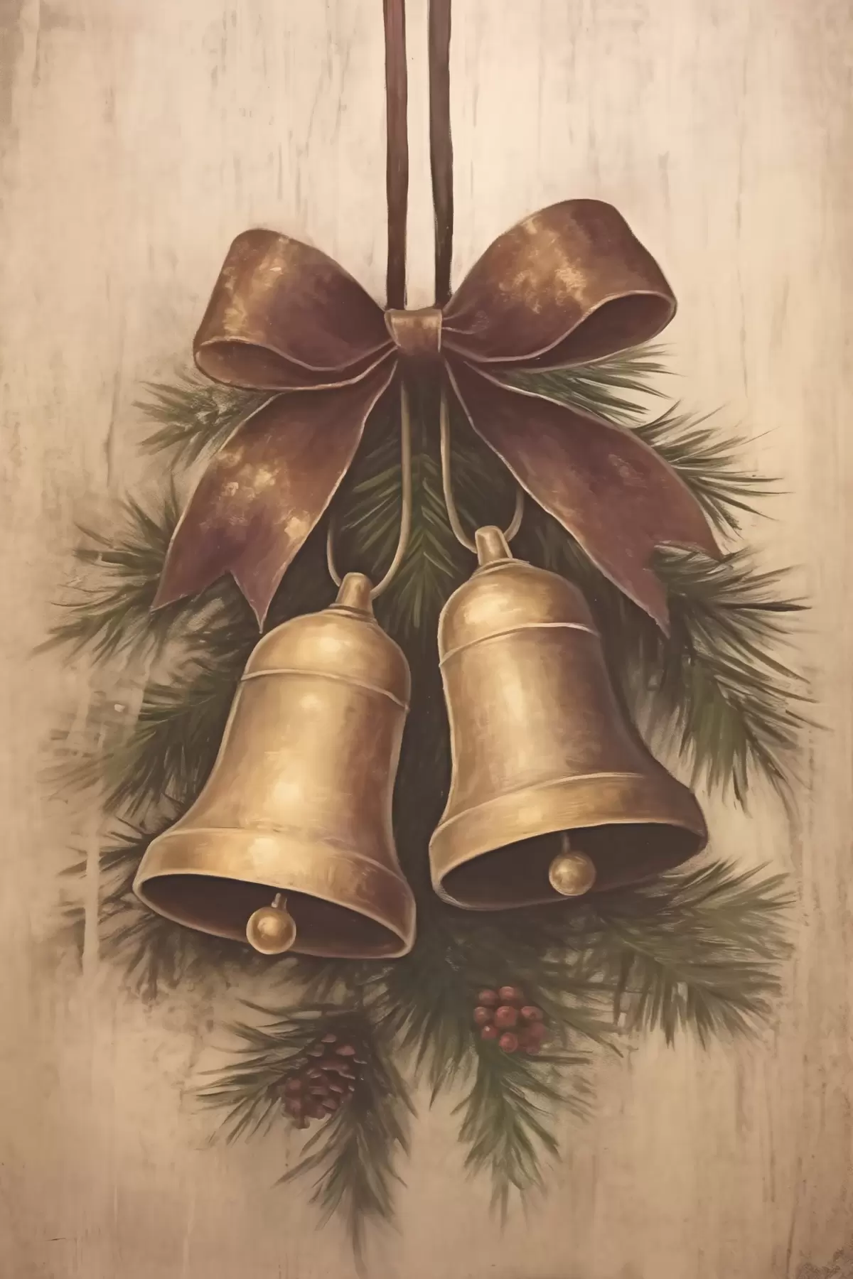 Peinture Décoration de Noël vintage avec deux cloches et un nœud Art. s46626