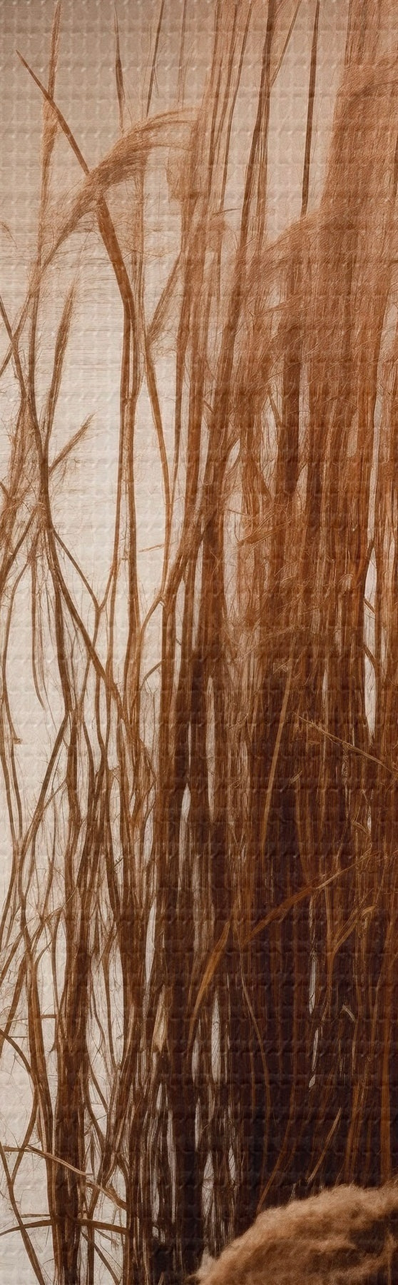 Peintures De grands roseaux poussant dans un plan d'eau, l'eau reflète les roseaux, arrière-plan brumeux, lumière douce, scène naturelle s46695