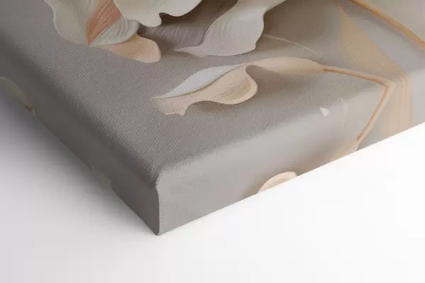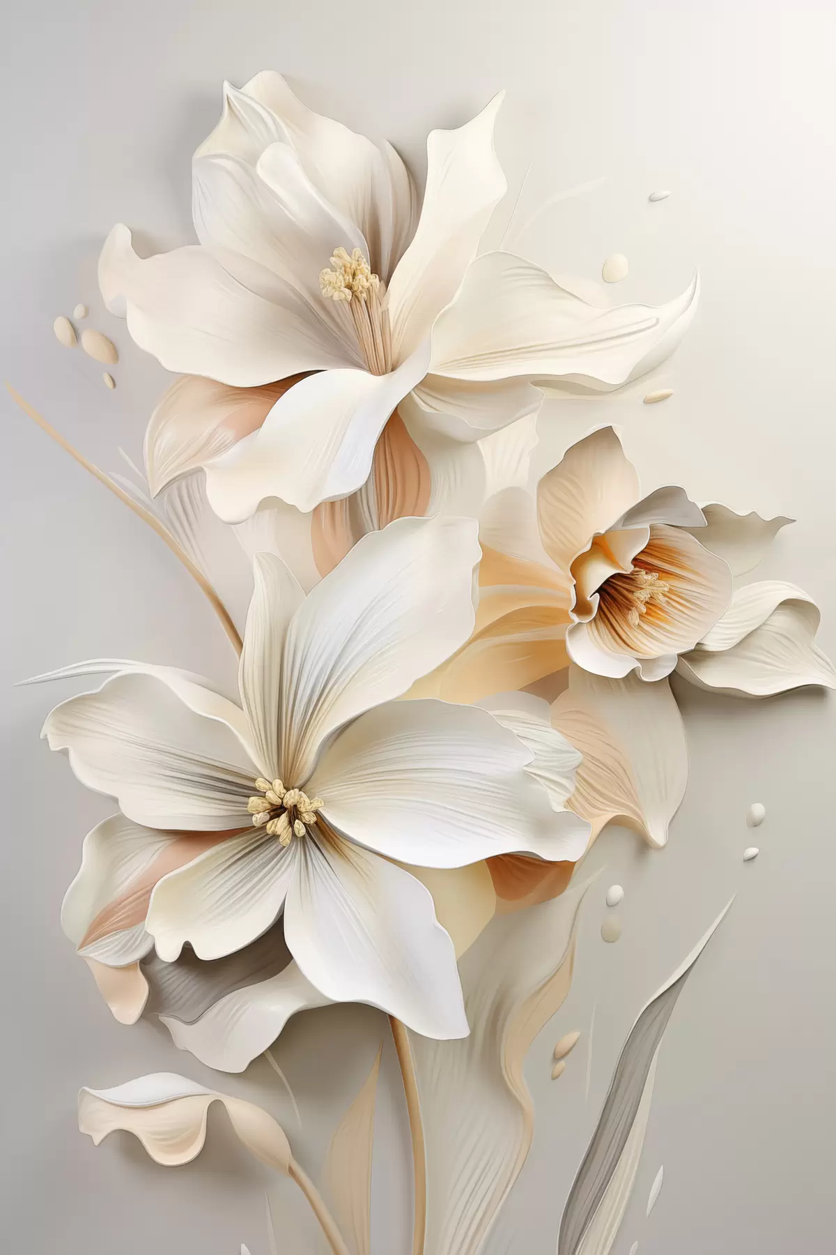 Peinture Fleurs blanches, pétales aux ombres douces, fond beige clair, composition élégante, style minimaliste Art. s46699