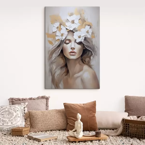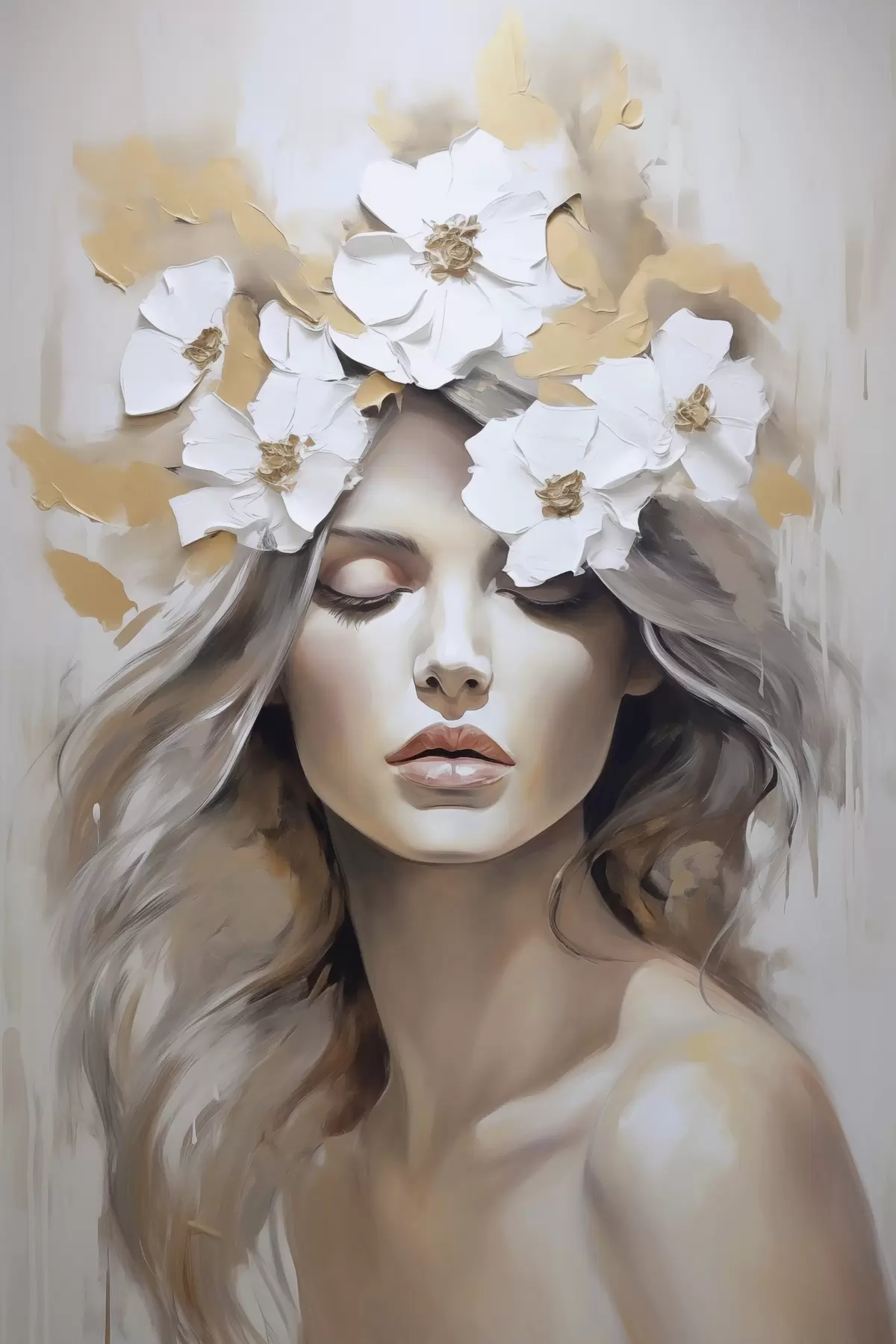 Peinture Portrait abstrait d'une fille avec des fleurs Art. s46757