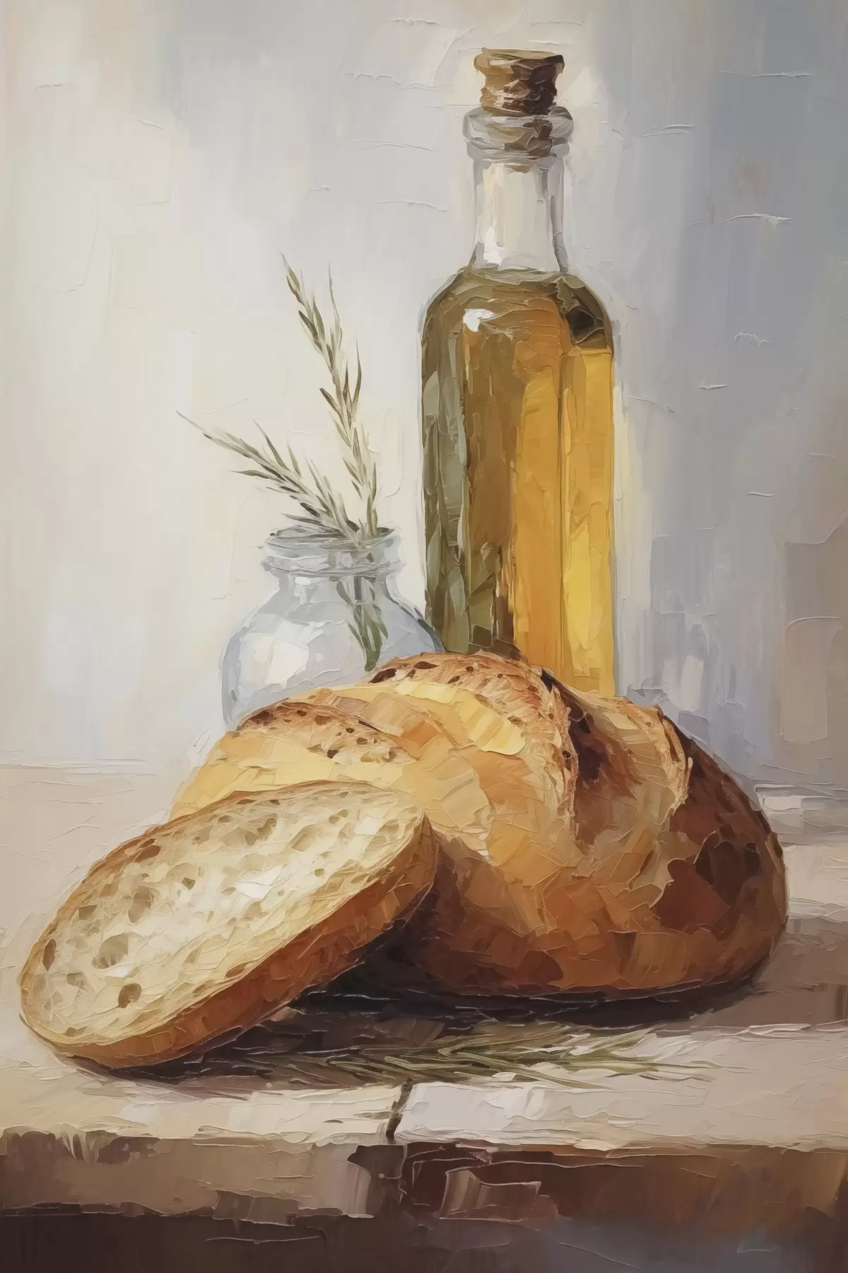 Peinture Du pain et une bouteille d'huile, peinture d'imitation Art. s46759