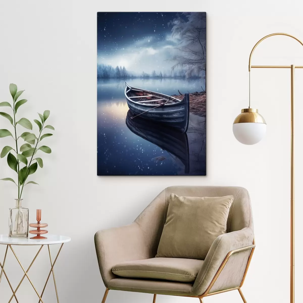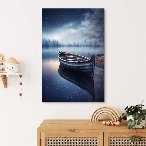 Peinture Bateau vide au bord d'un lac en hiver Art. s46773