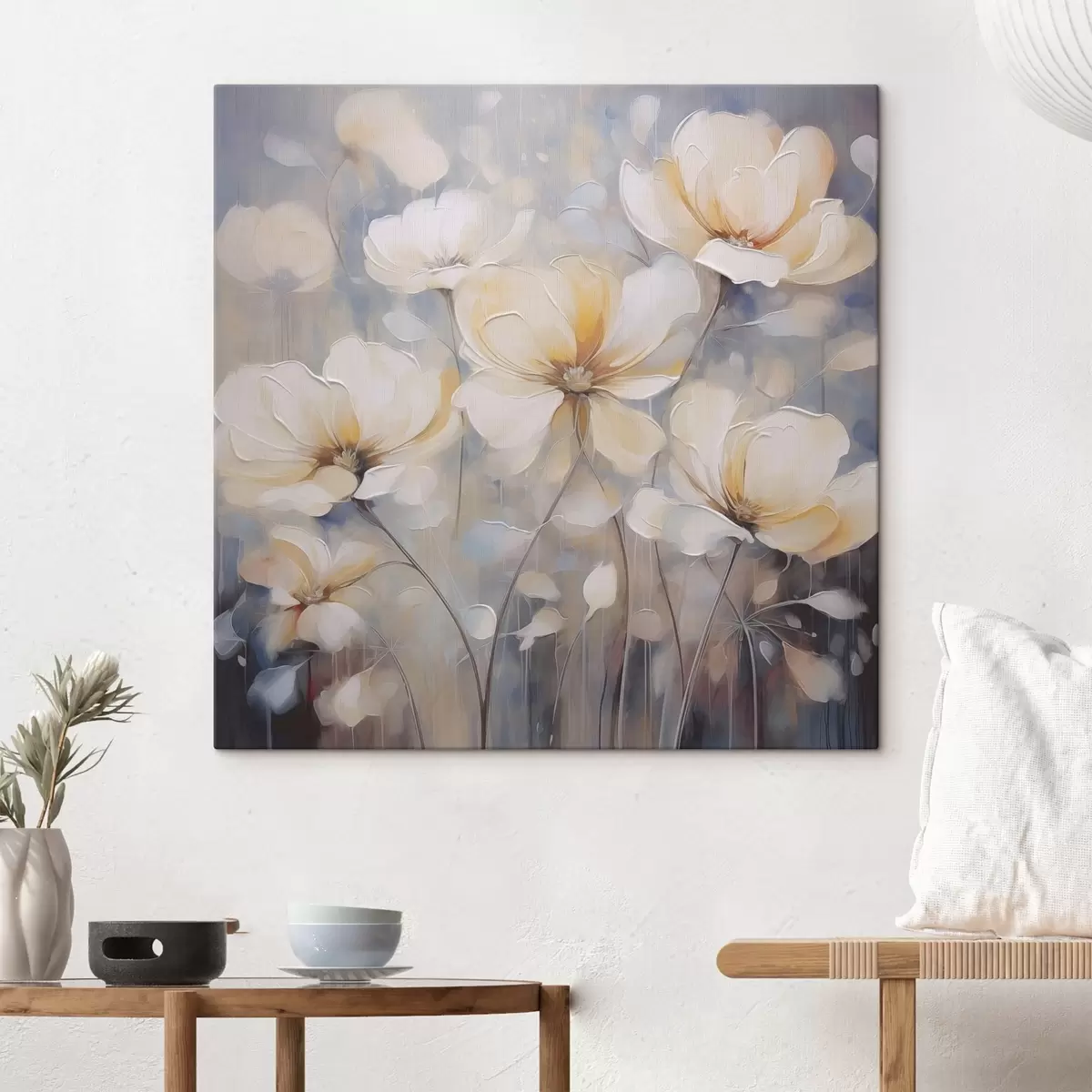 Trois types de matériaux peuvent être commandés : Economic Canvas - matériau dense et durable pour l'impression numérique, identique à la toile de peintre, surface imperméable, reproduction réaliste des détails, matériau à grain moyen. Premium Canvas - la texture ressemble à celle d'une toile de peintre (petits fils entrelacés). Reproduction douce et détaillée de l'image sur une surface mate. Eco-Premium - tissu 100 % coton de haute qualité. Grâce aux fibres naturelles de coton, le matériau est durable et résistant à l'usure. Excellente reproduction des couleurs et des détails.