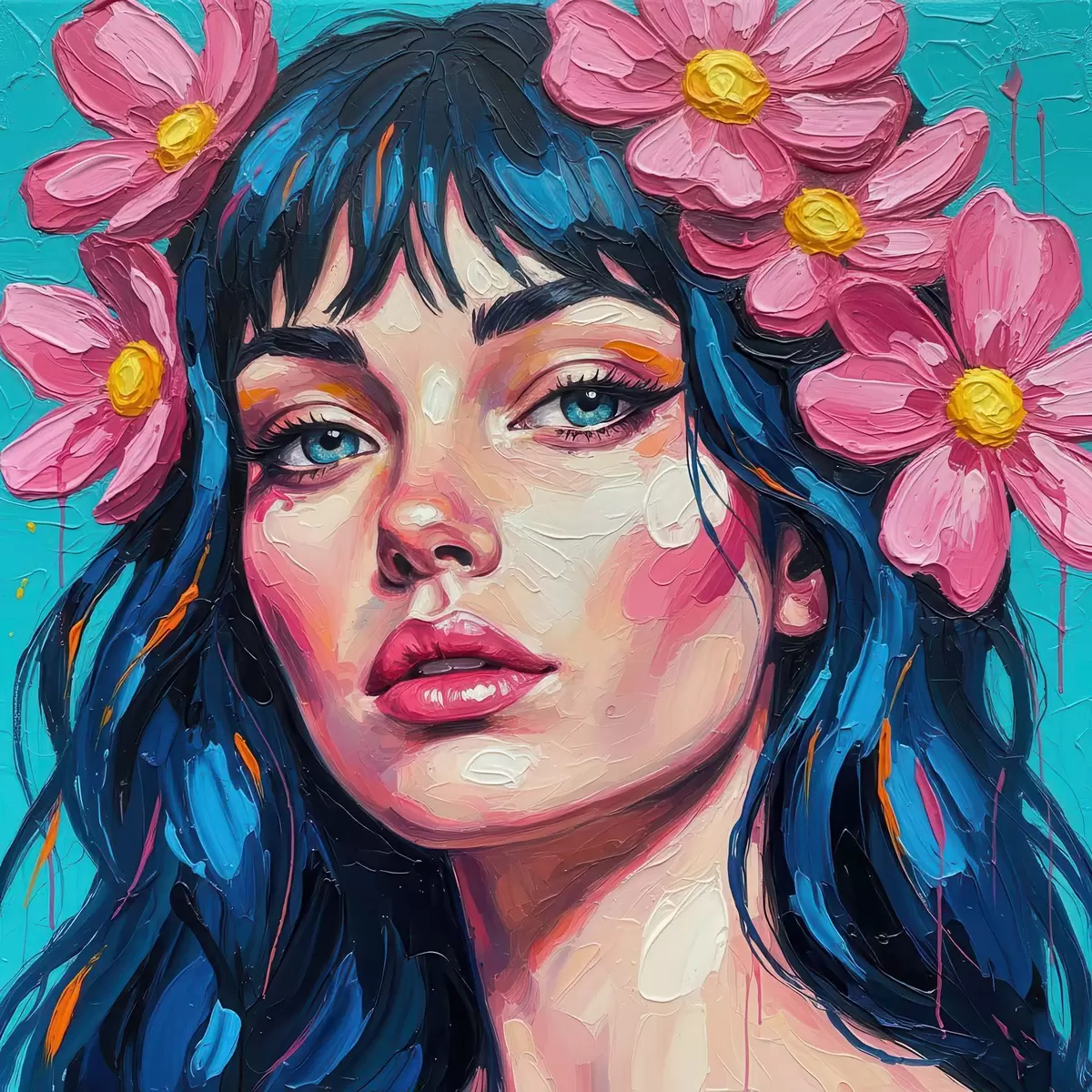 Peinture Fille avec des fleurs dans les cheveux Art. s46846