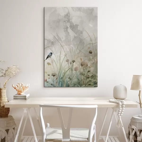 Peinture Oiseau sur des fleurs sauvages Art. s46889