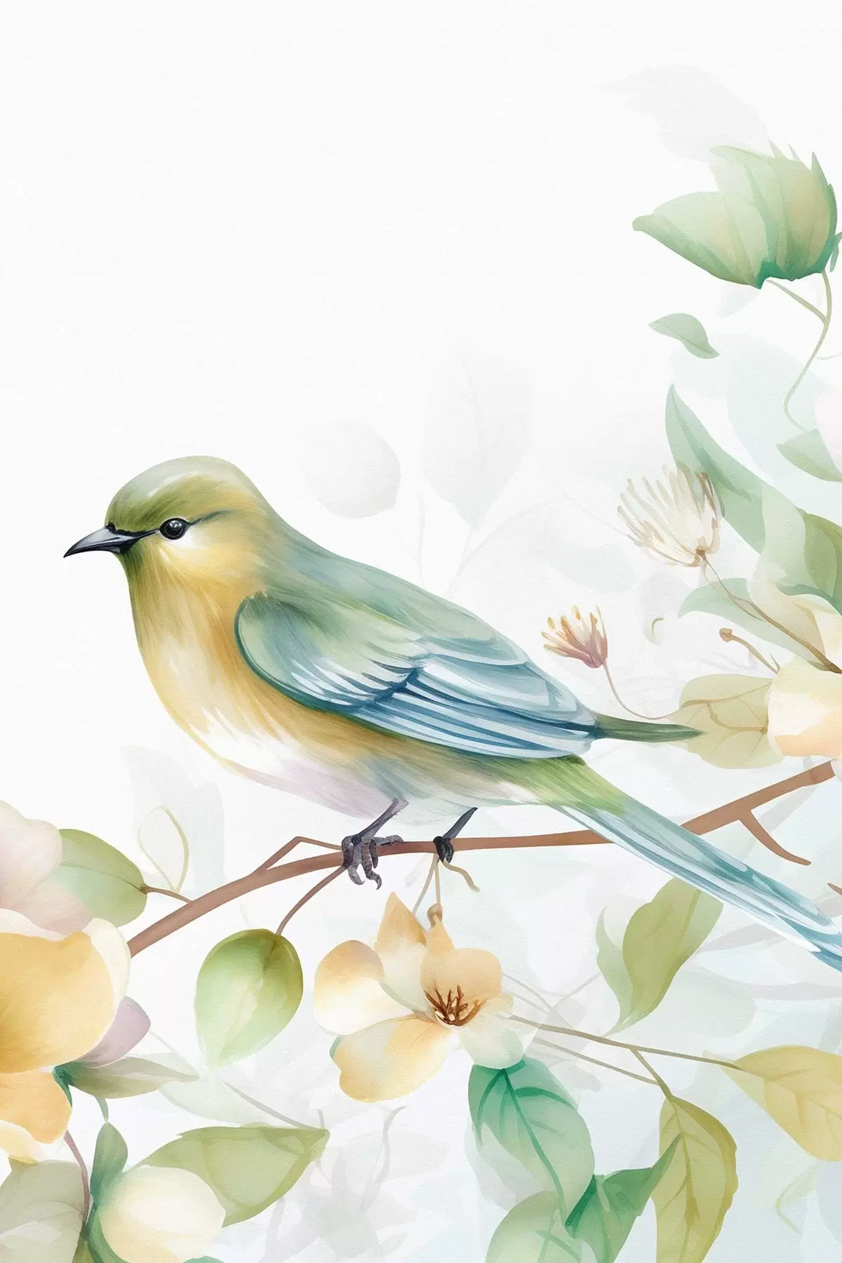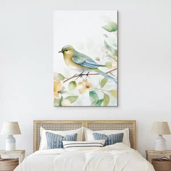Peintures Mésange sur une branche, imitation aquarelle s46892