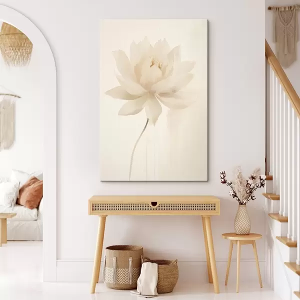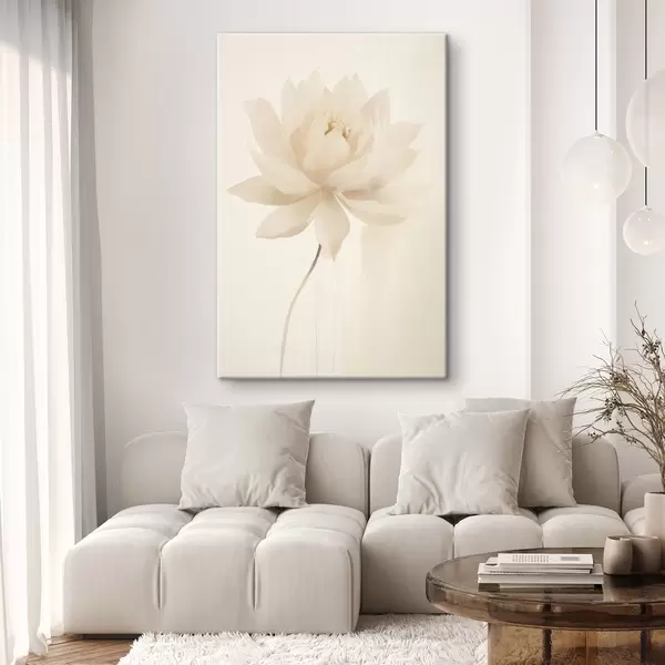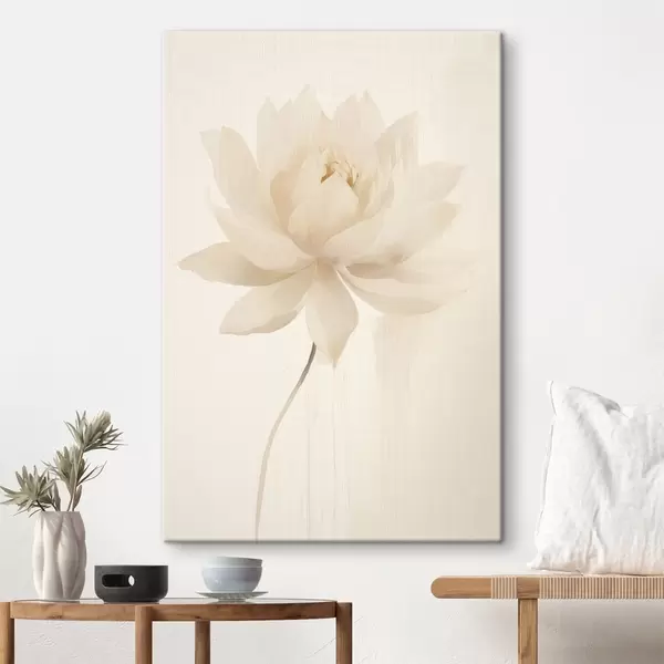 Peintures Délicat lotus blanc sur fond clair dans un style minimaliste s46936