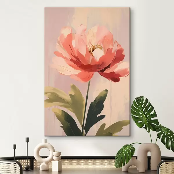 Peintures Pivoine corail sur fond pastel dans un style d'illustration artistique moderne s46949