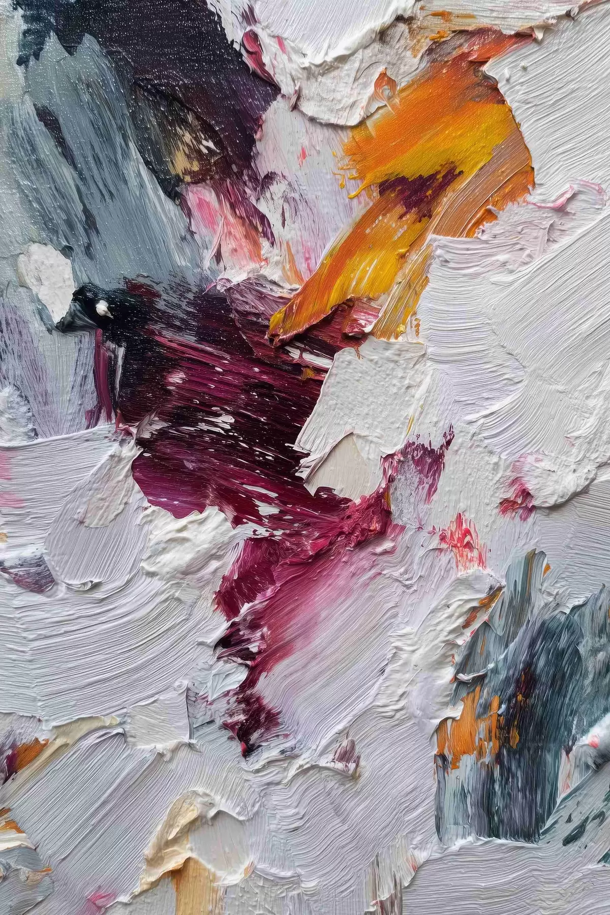 Peintures Composition abstraite avec des touches intenses de cerise et d'orange dans un style de peinture à l'huile s46959