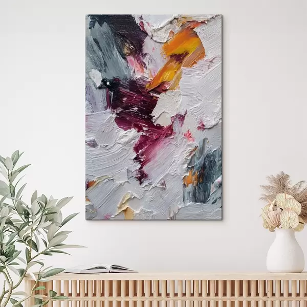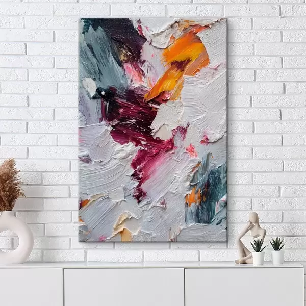 Peinture Composition abstraite avec des touches intenses de cerise et d'orange dans un style de peinture à l'huile Art. s46959