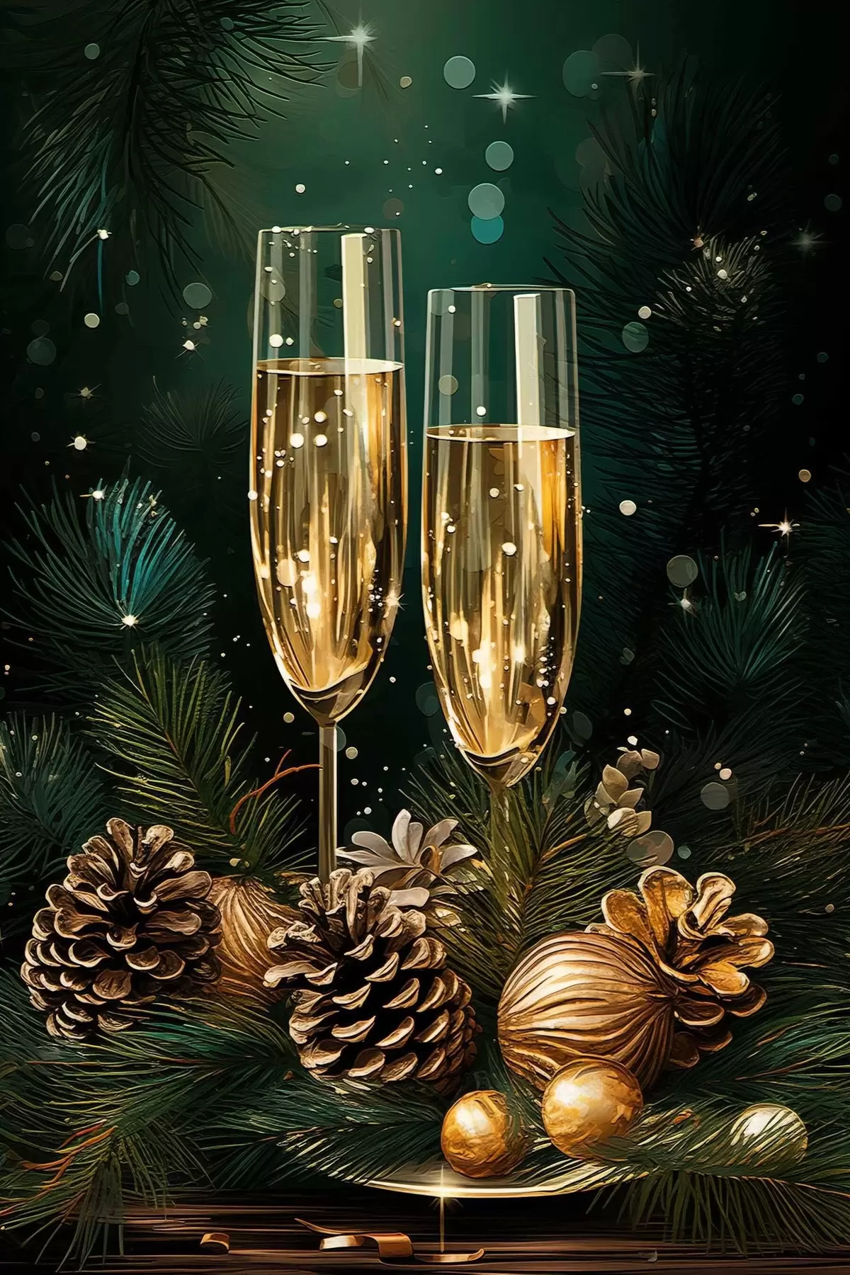 Peinture Composition du Nouvel An, coupes de champagne Art. s46981