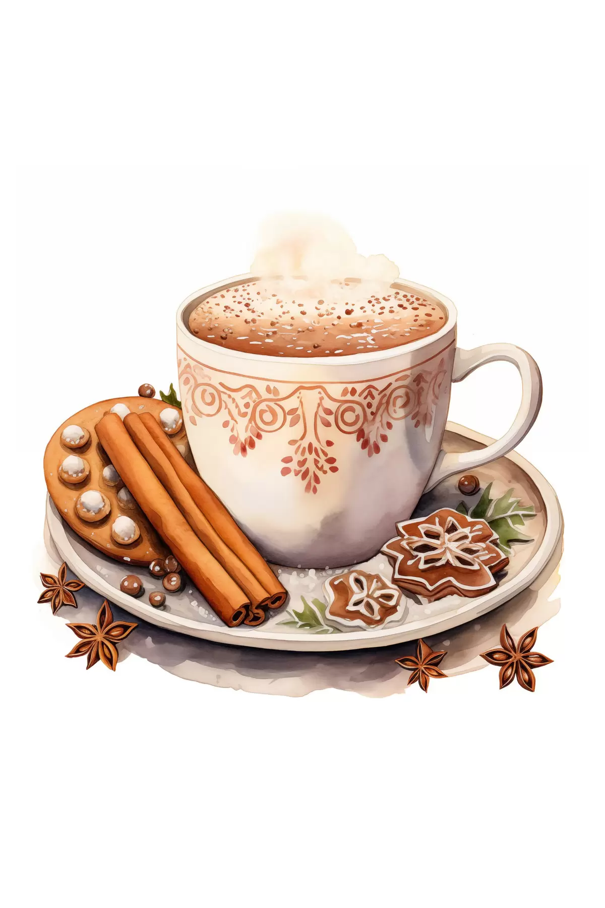 Peinture Dessin imitant l'aquarelle, café à la cannelle Art. s46983