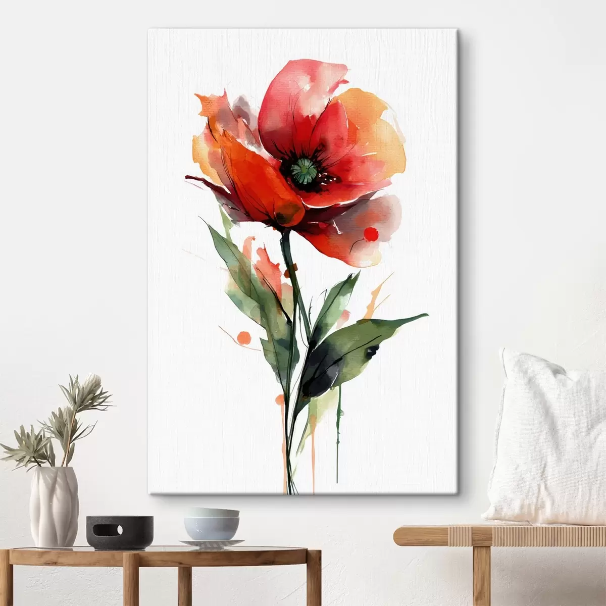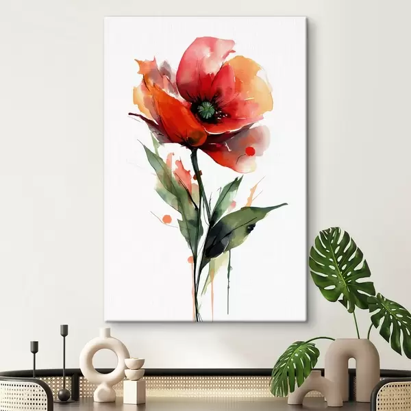 Peinture Fleur de pavot avec des coulures expressives de peinture aquarelle dans un style d'illustration d'art moderne Art. s47086