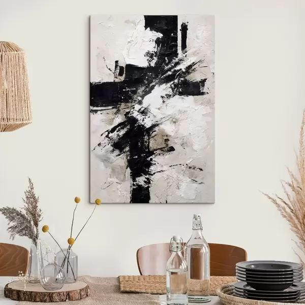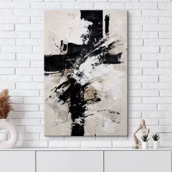 Peintures Intérieur moderne abstrait avec des lignes chaotiques et des coups de pinceau volumétriques dans un style de peinture sur toile. s47090