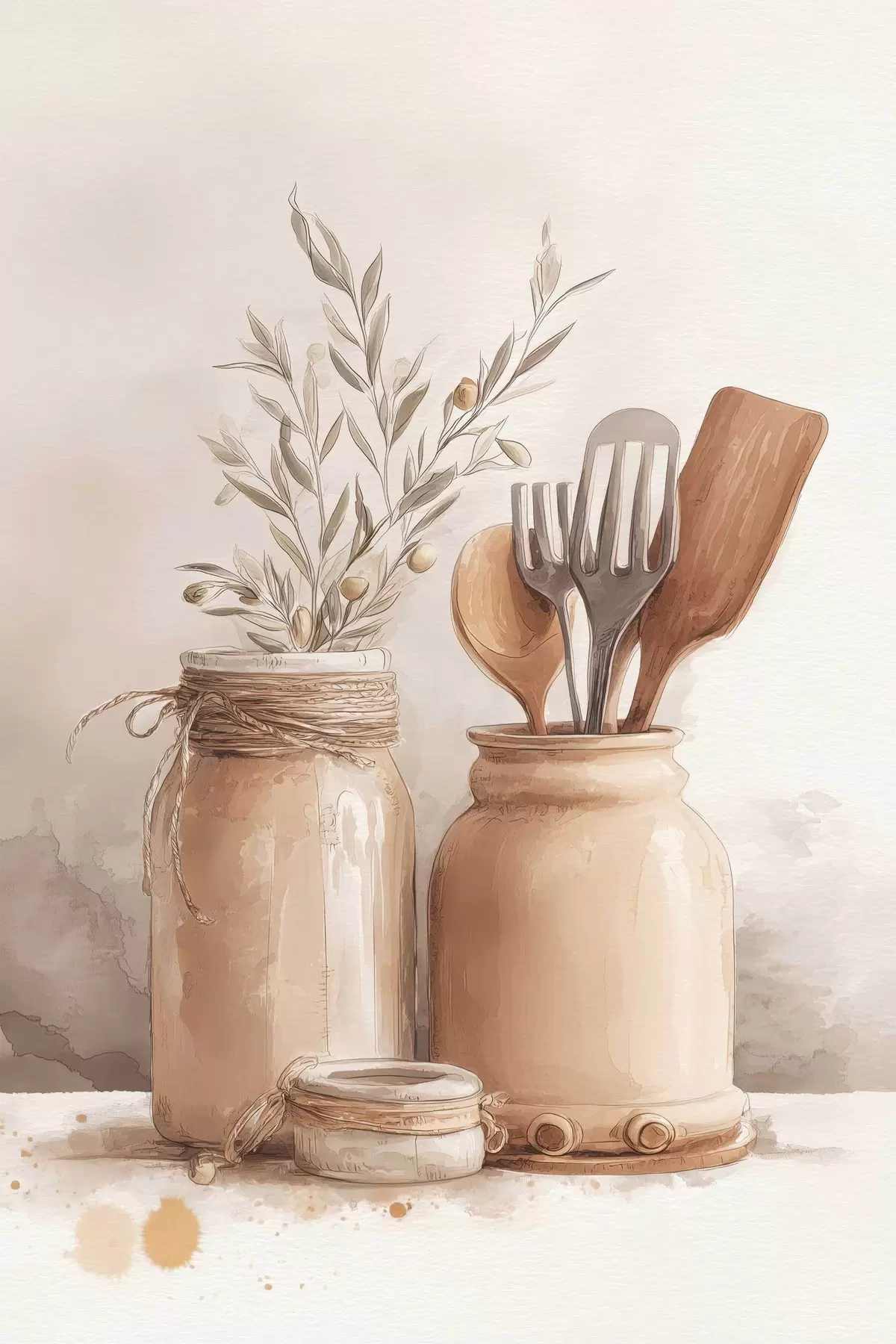 Peinture nature morte de cuisine dans un style aquarelle Art. s47125