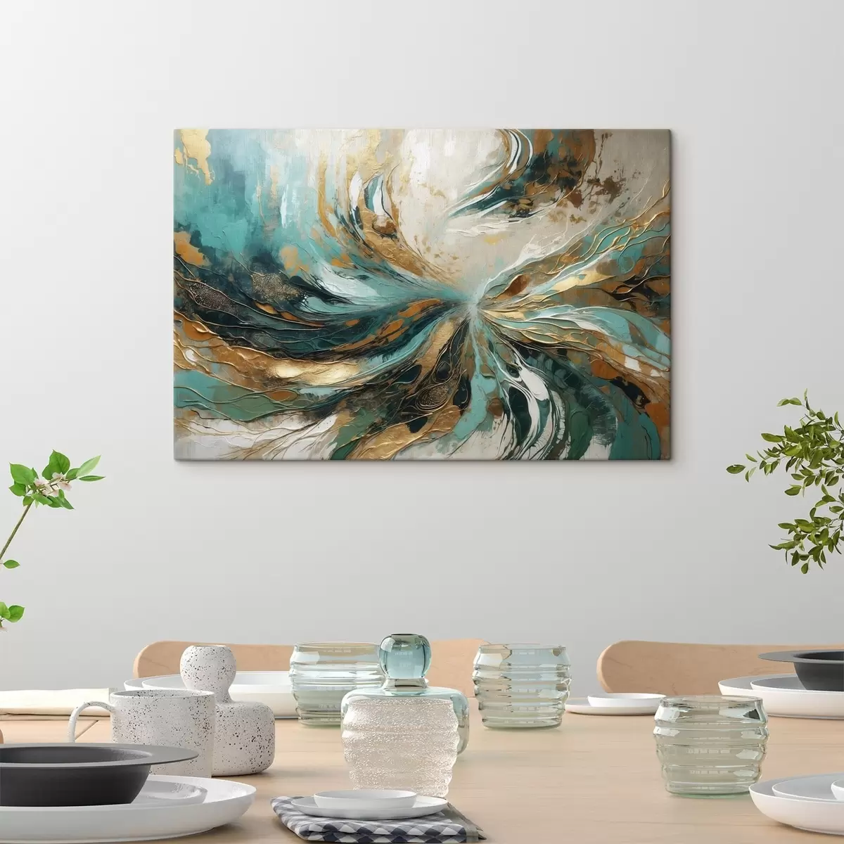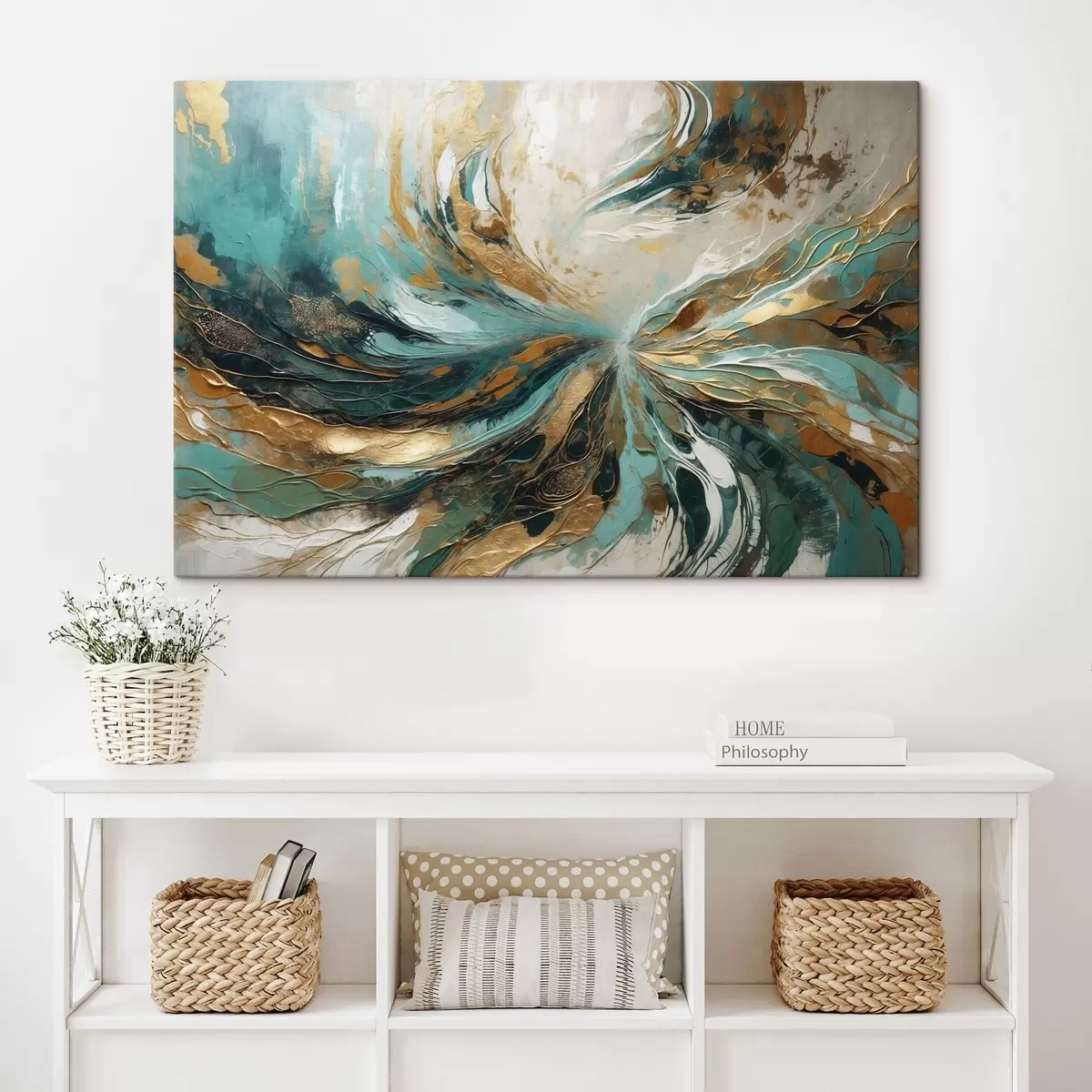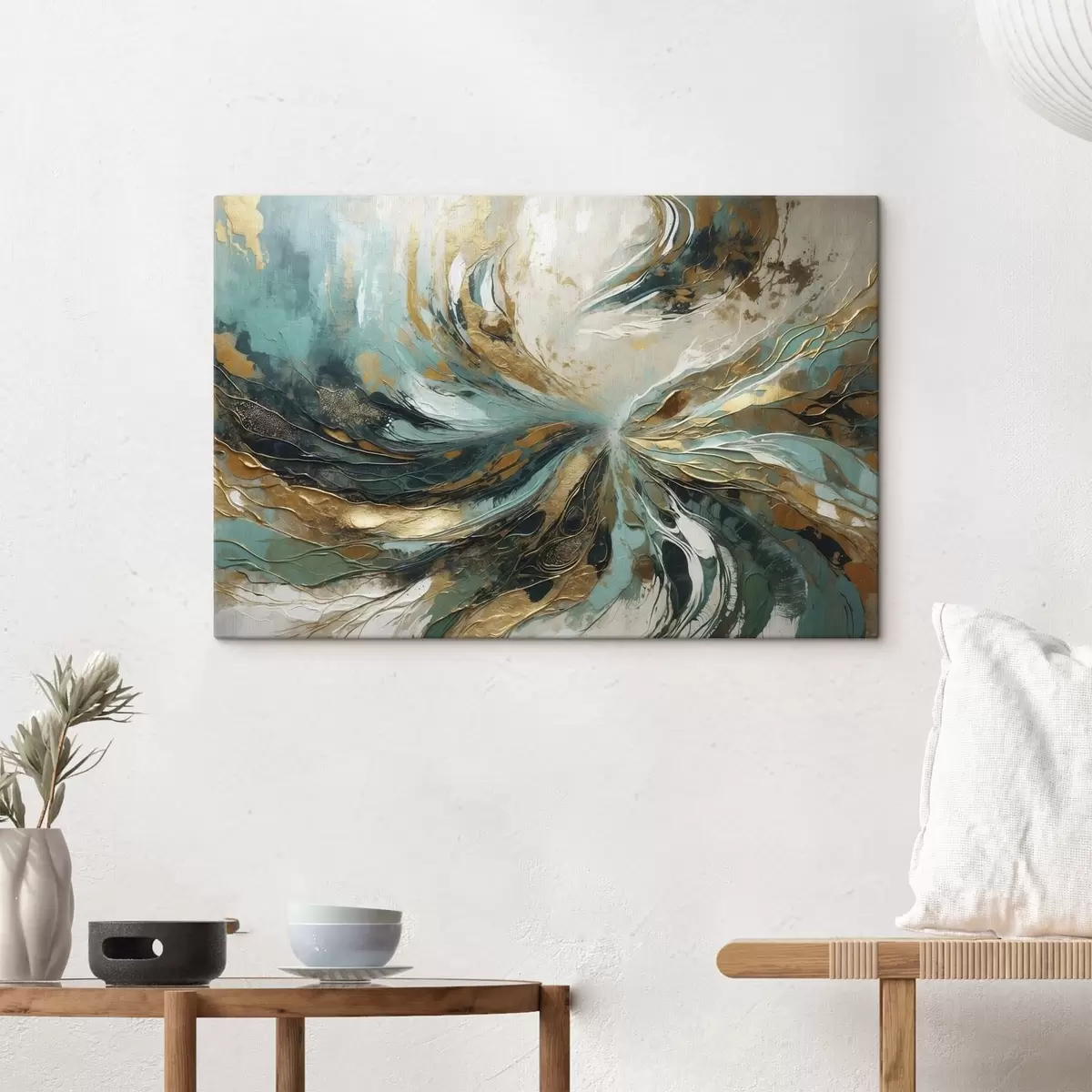 Peintures Abstraction turquoise avec lignes s47258