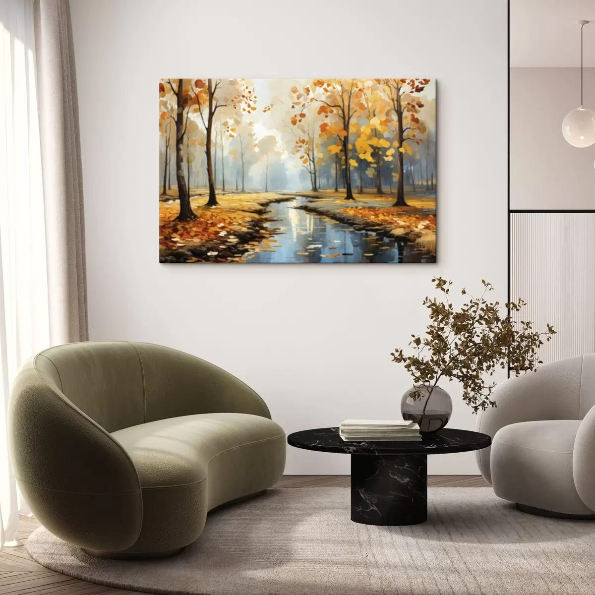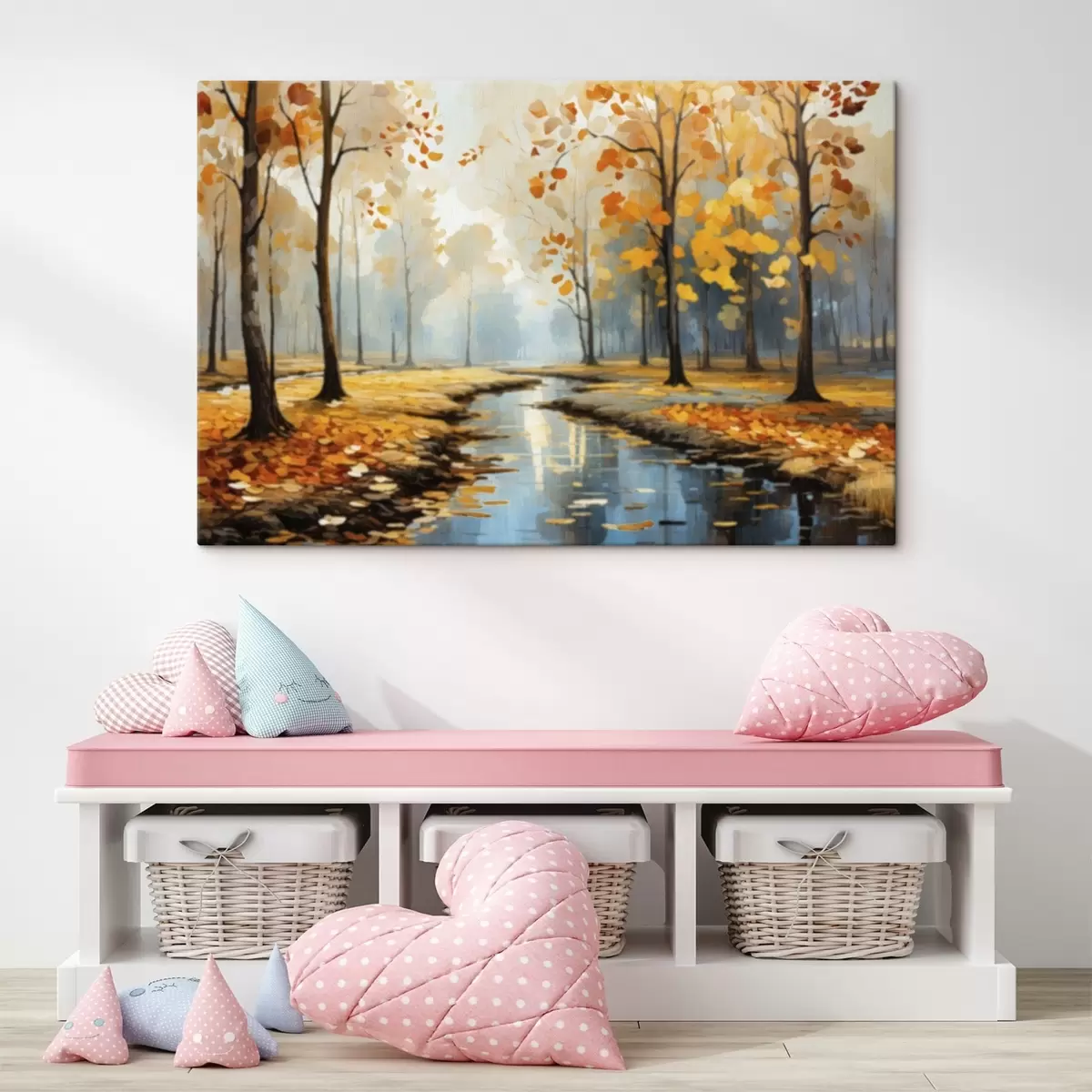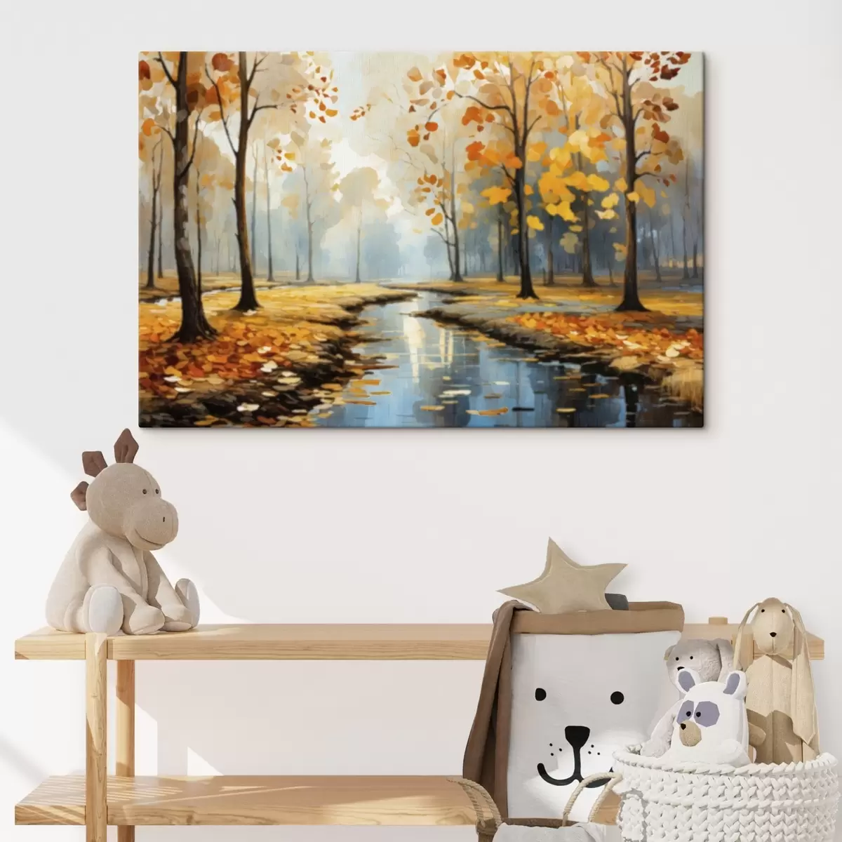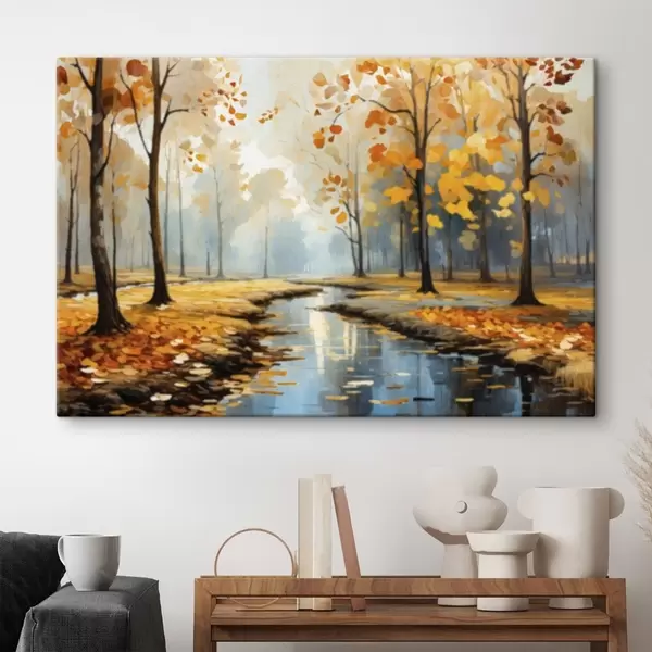 Peinture Forêt automnale avec un ruisseau et des feuilles jaunes Art. s47278