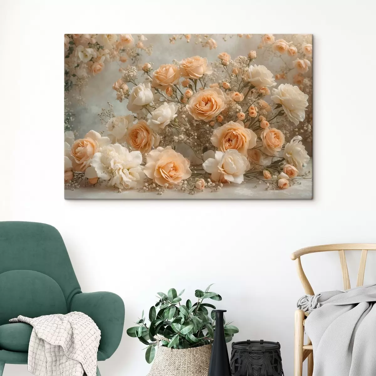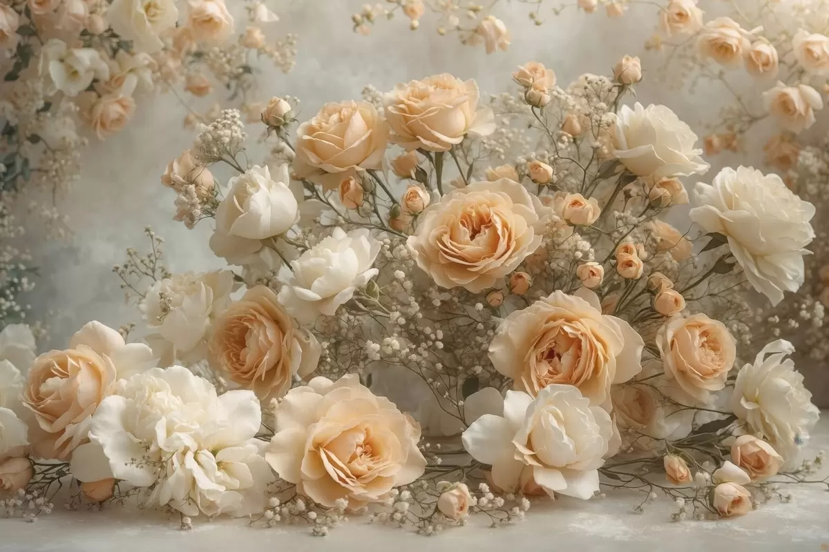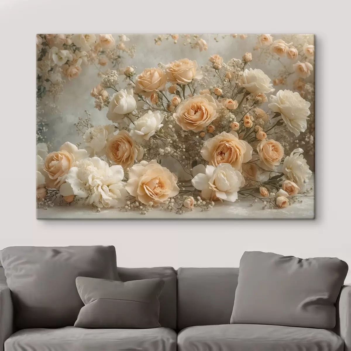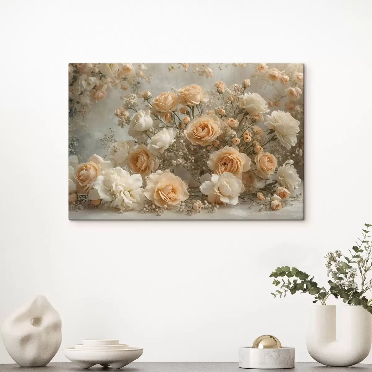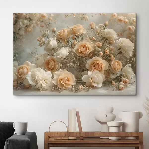 Peinture Délicates roses crème dans un grand arrangement Art. s47279