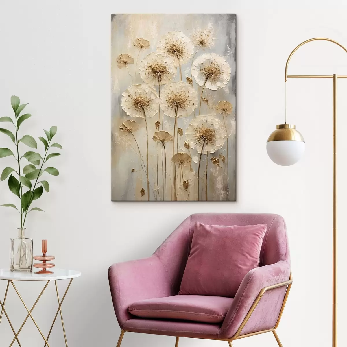 Peinture Grandes fleurs crème sur fond clair Art. s47282