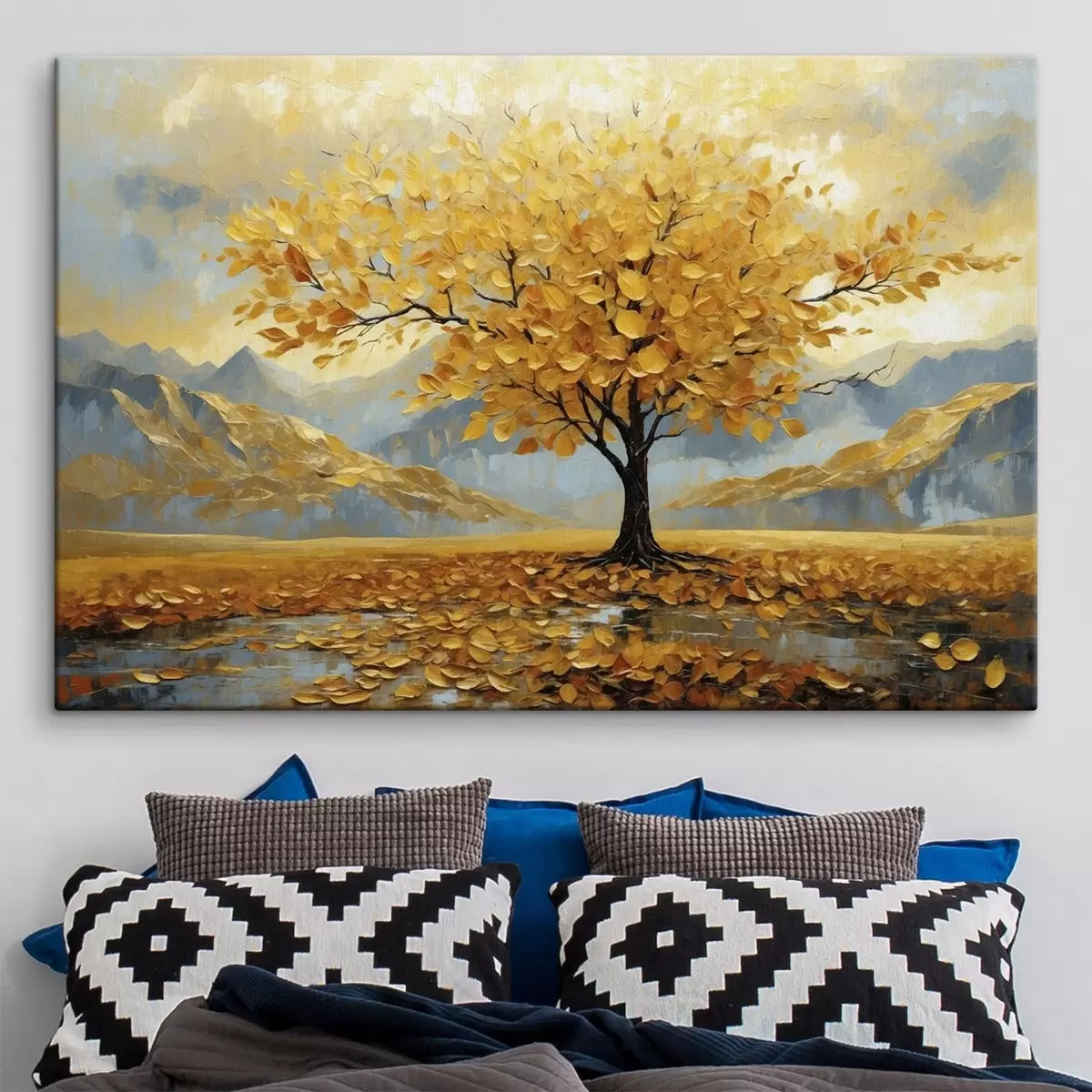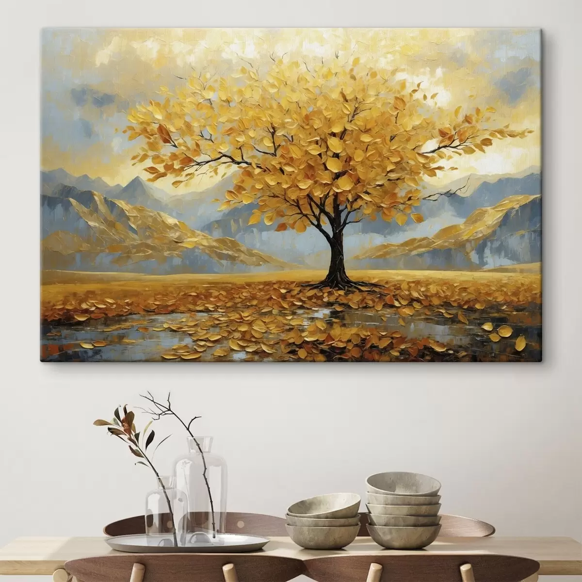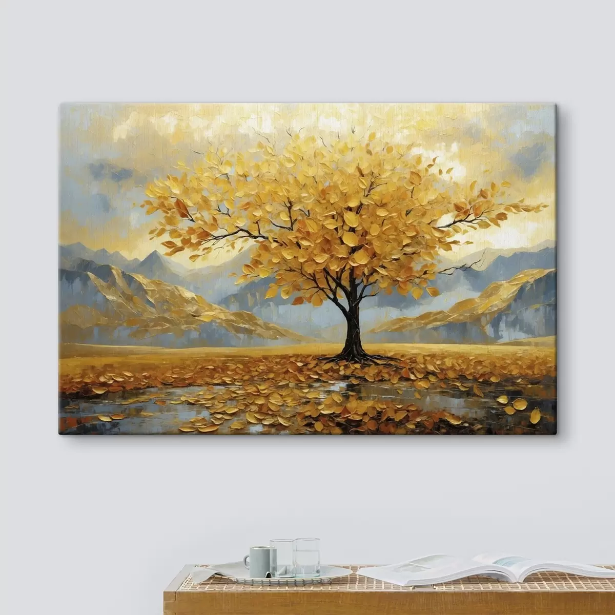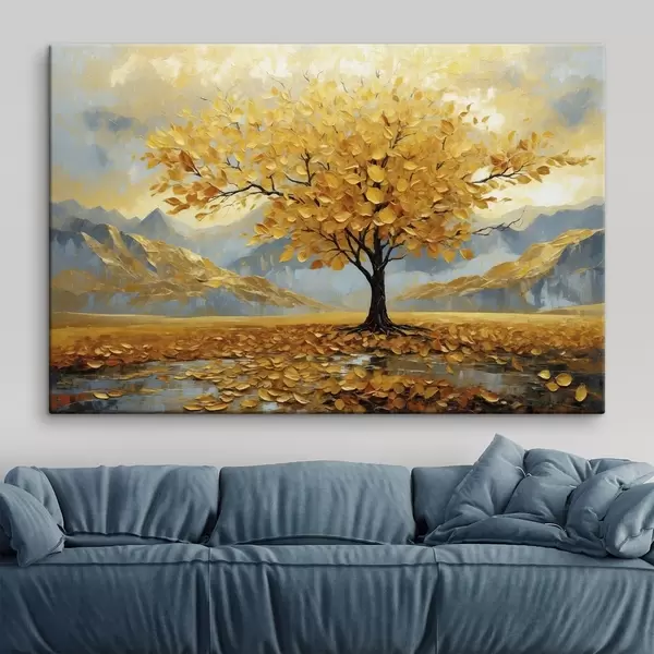 Peinture Arbre aux feuilles jaunes dans un paysage montagneux Art. s47285