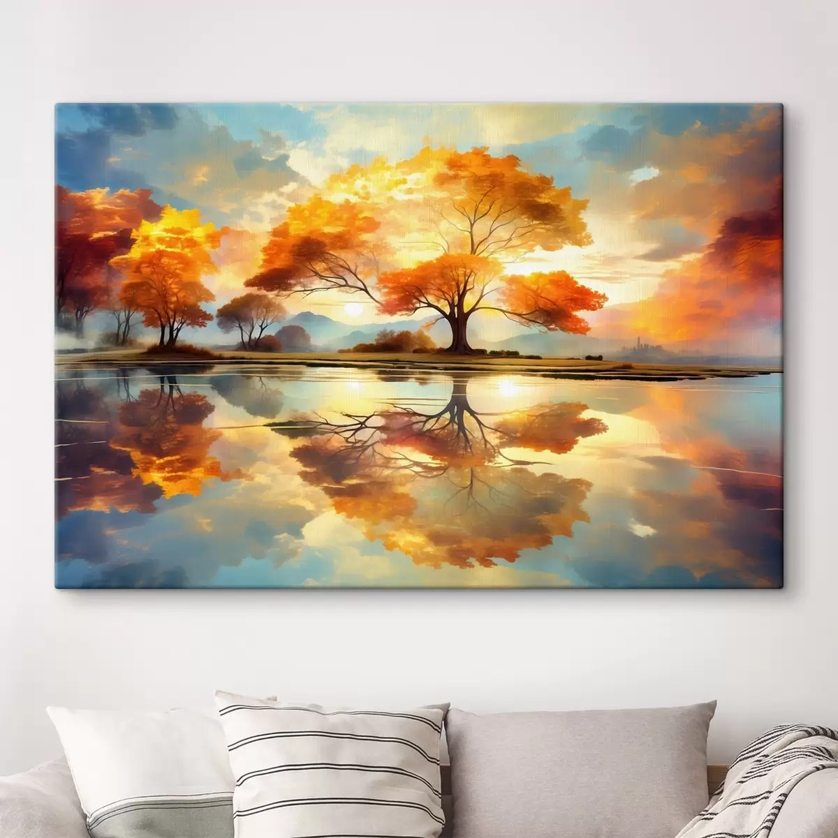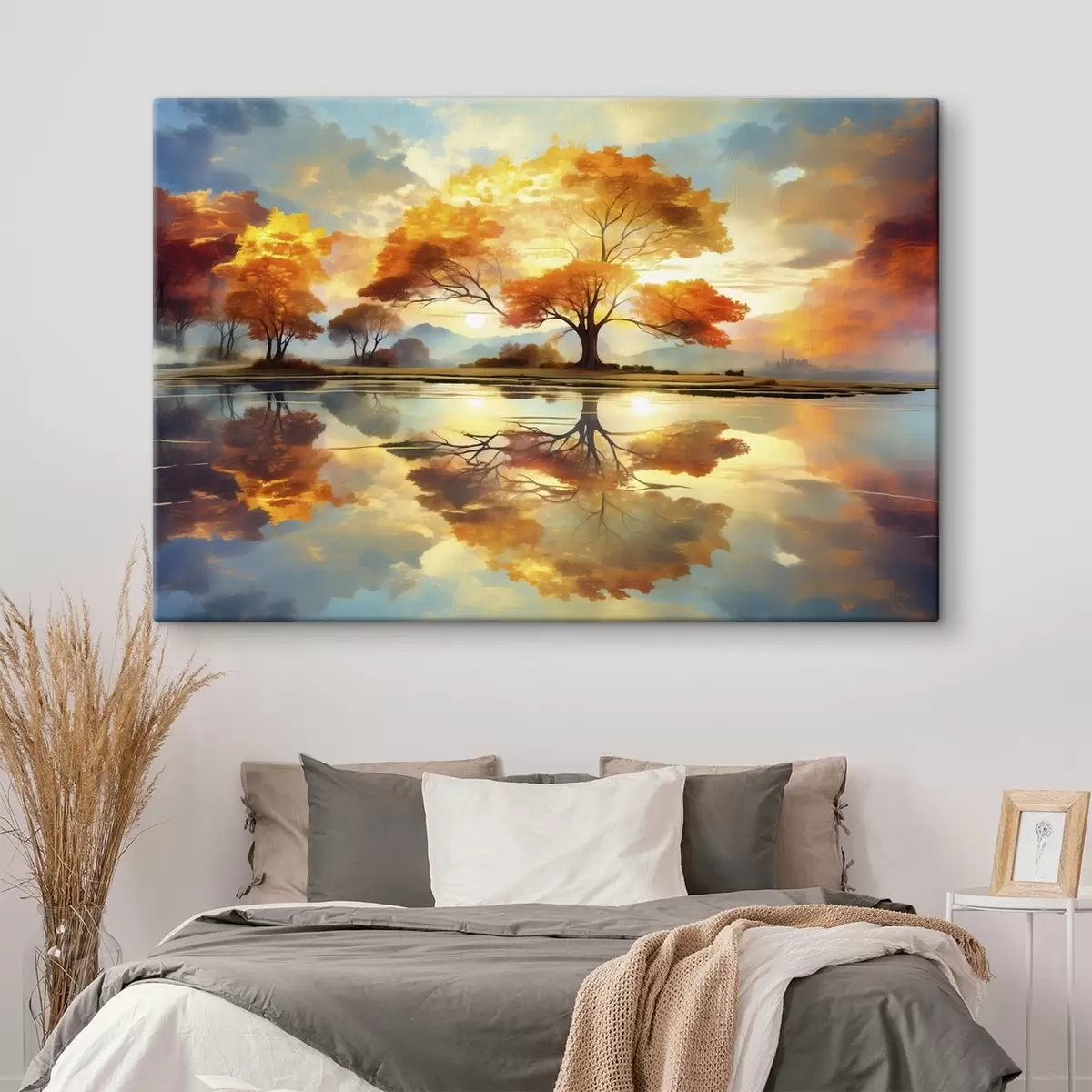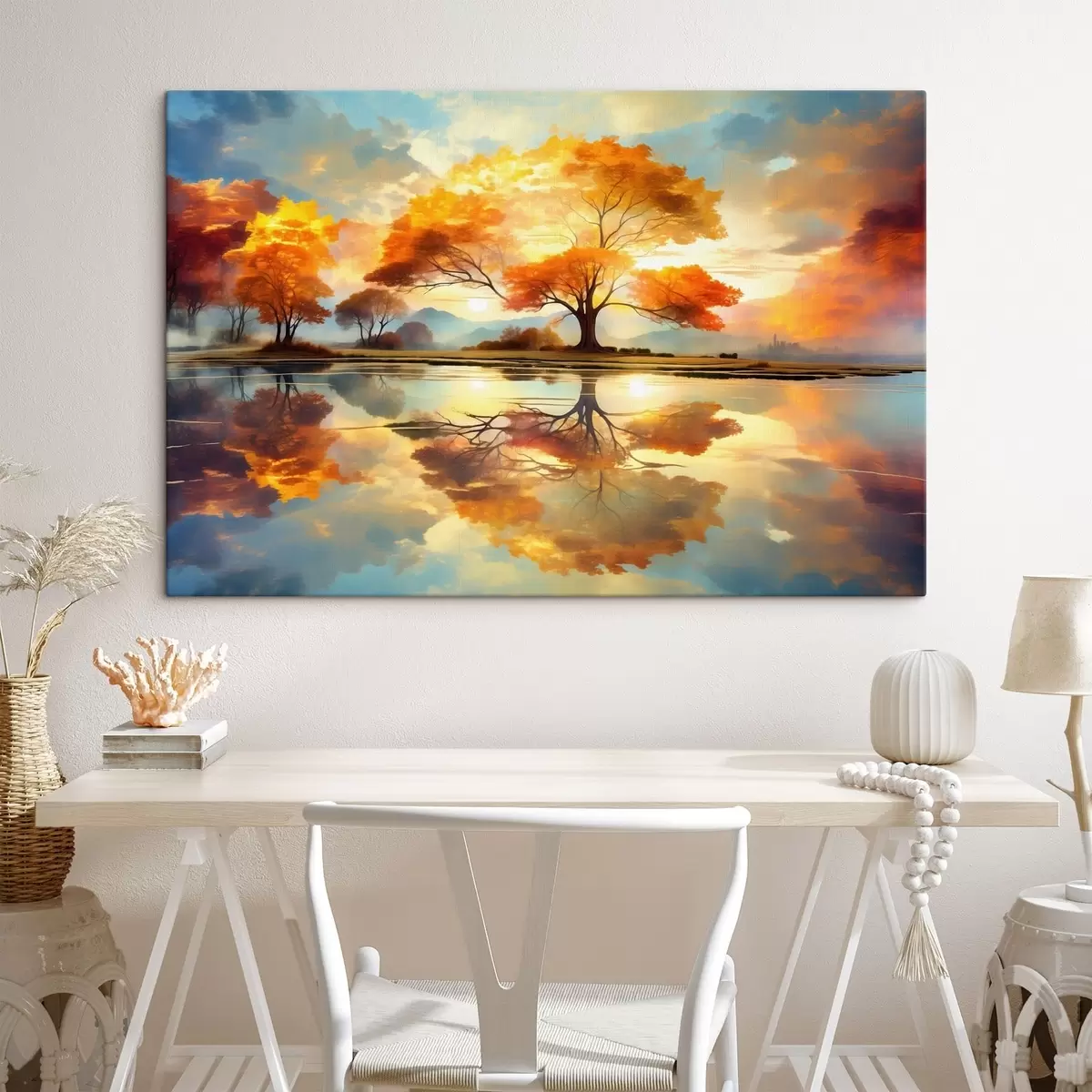 Peinture Des arbres aux couleurs vives se reflètent dans l'eau Art. s47287