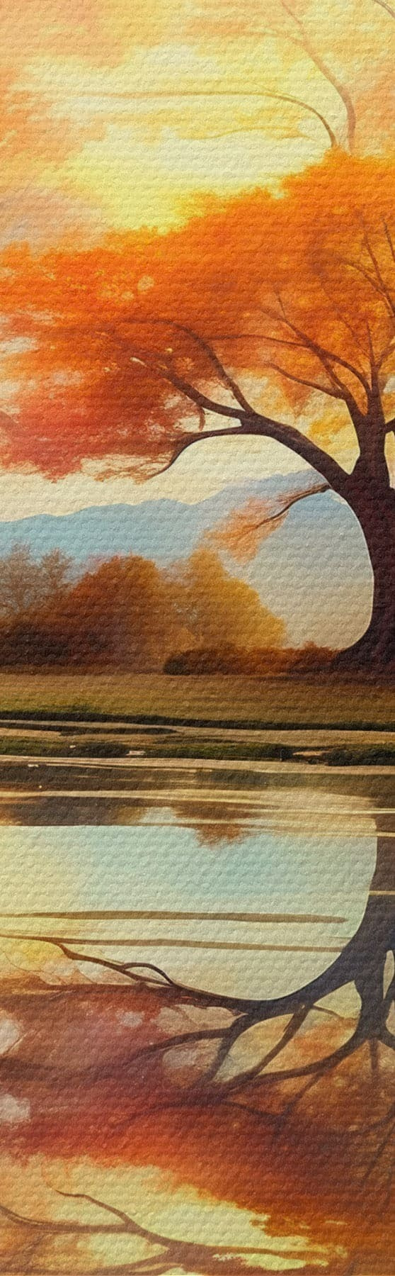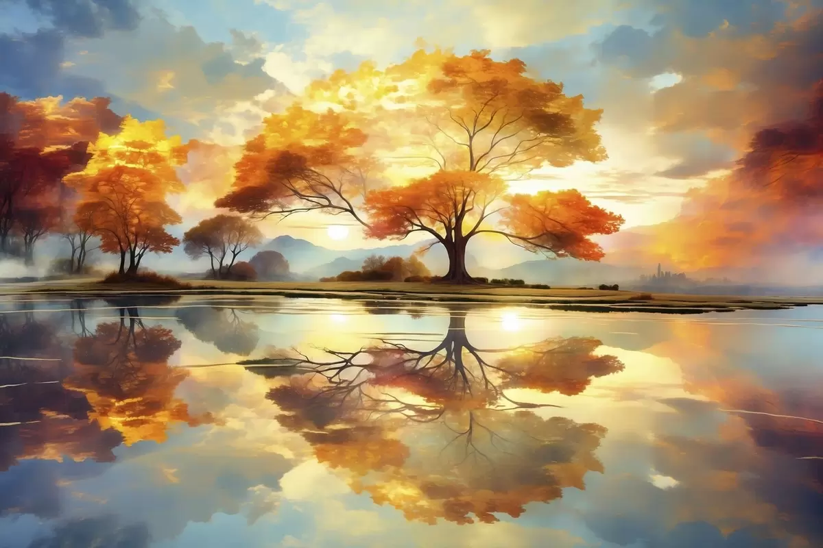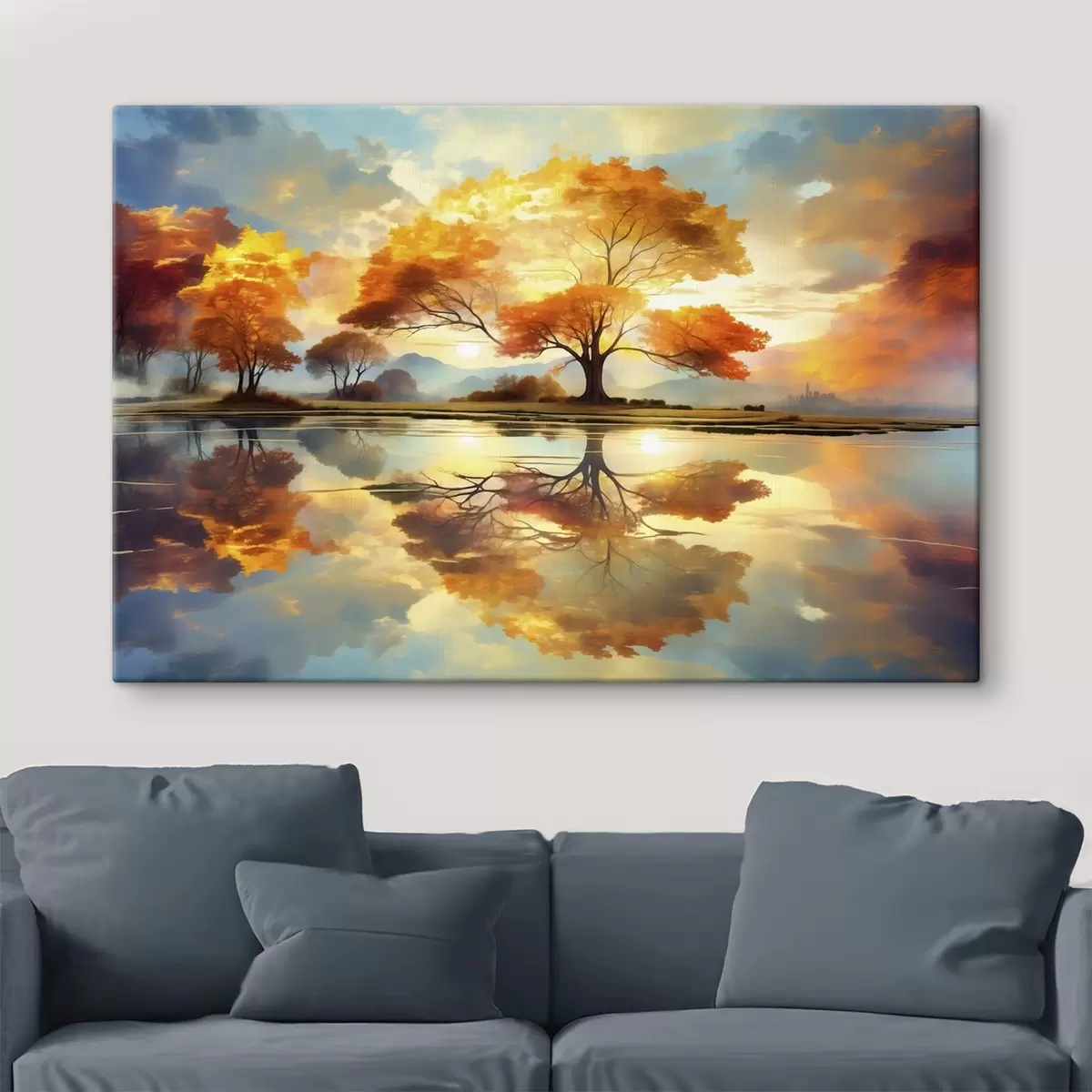 Peinture Des arbres aux couleurs vives se reflètent dans l'eau Art. s47287