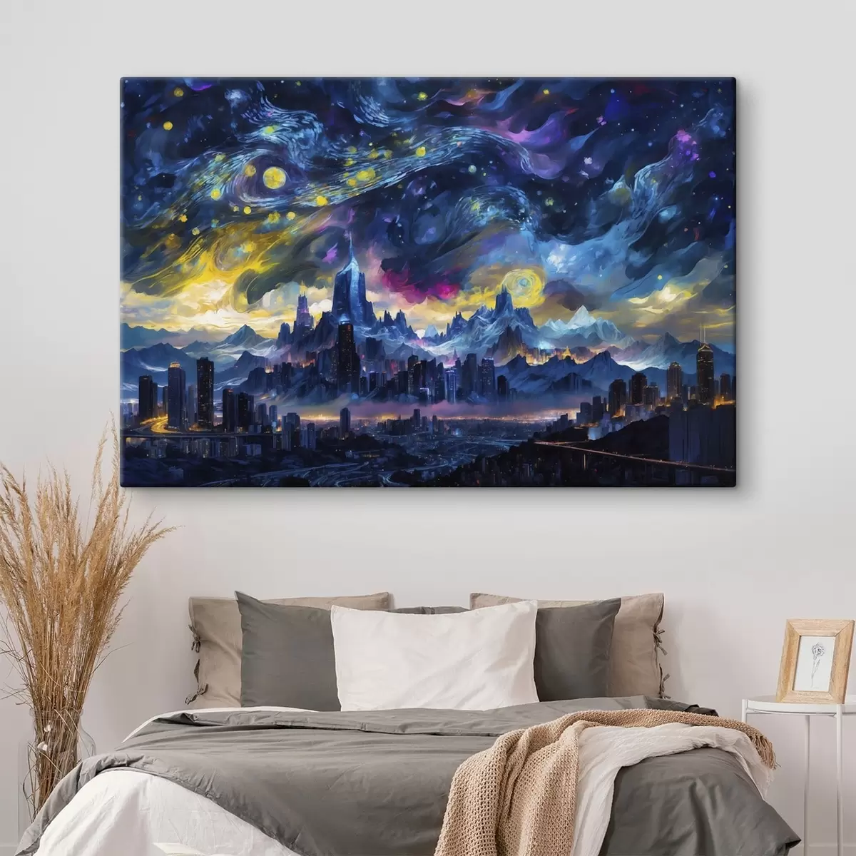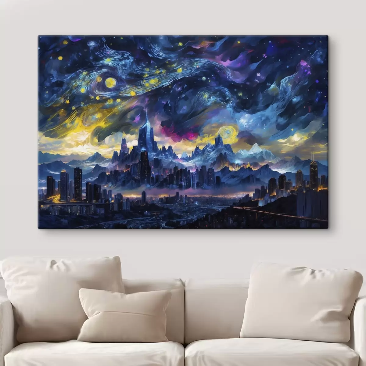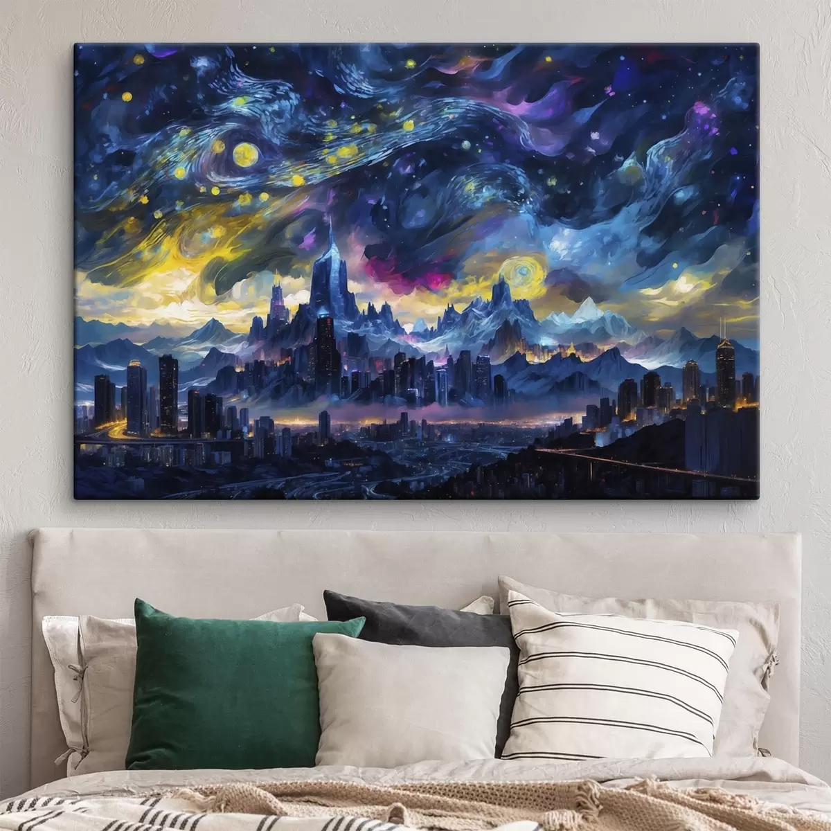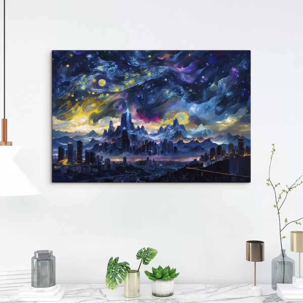 Peinture Une ville fantastique sous un ciel nocturne lumineux Art. s47288