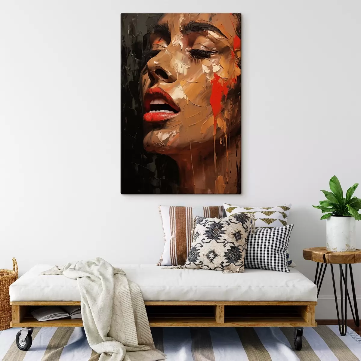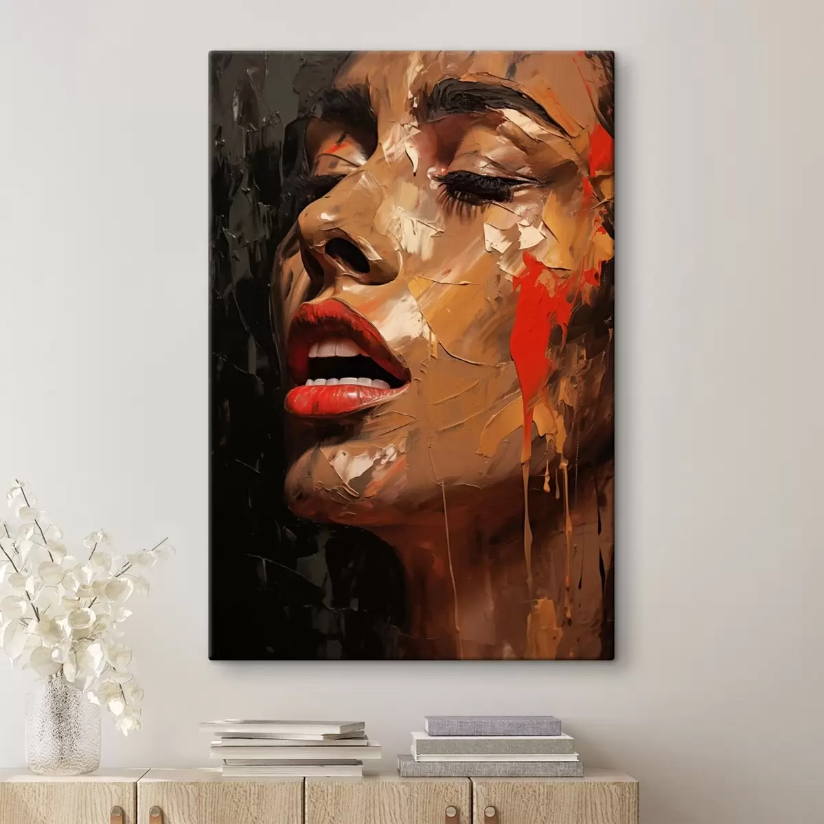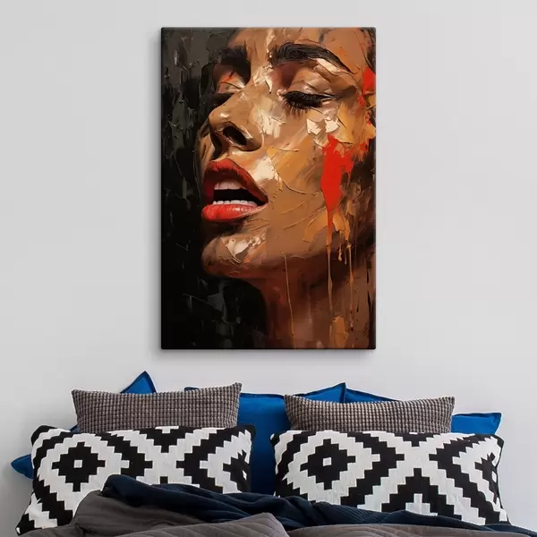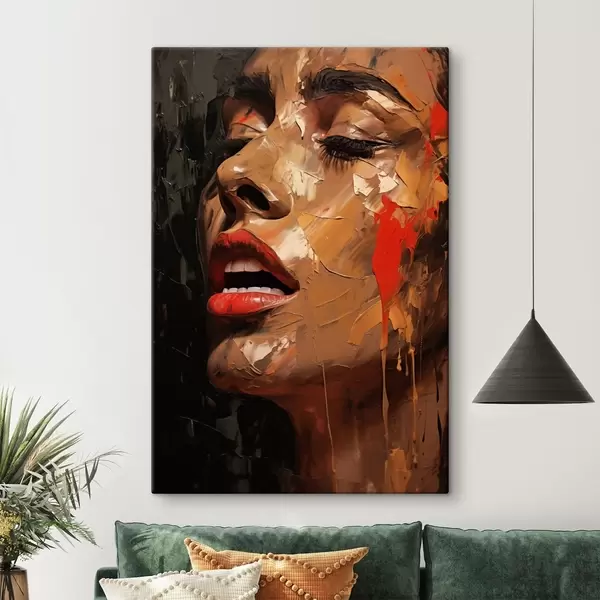 Peintures Portrait féminin aux traits chaleureux et aux tons rouges s47294