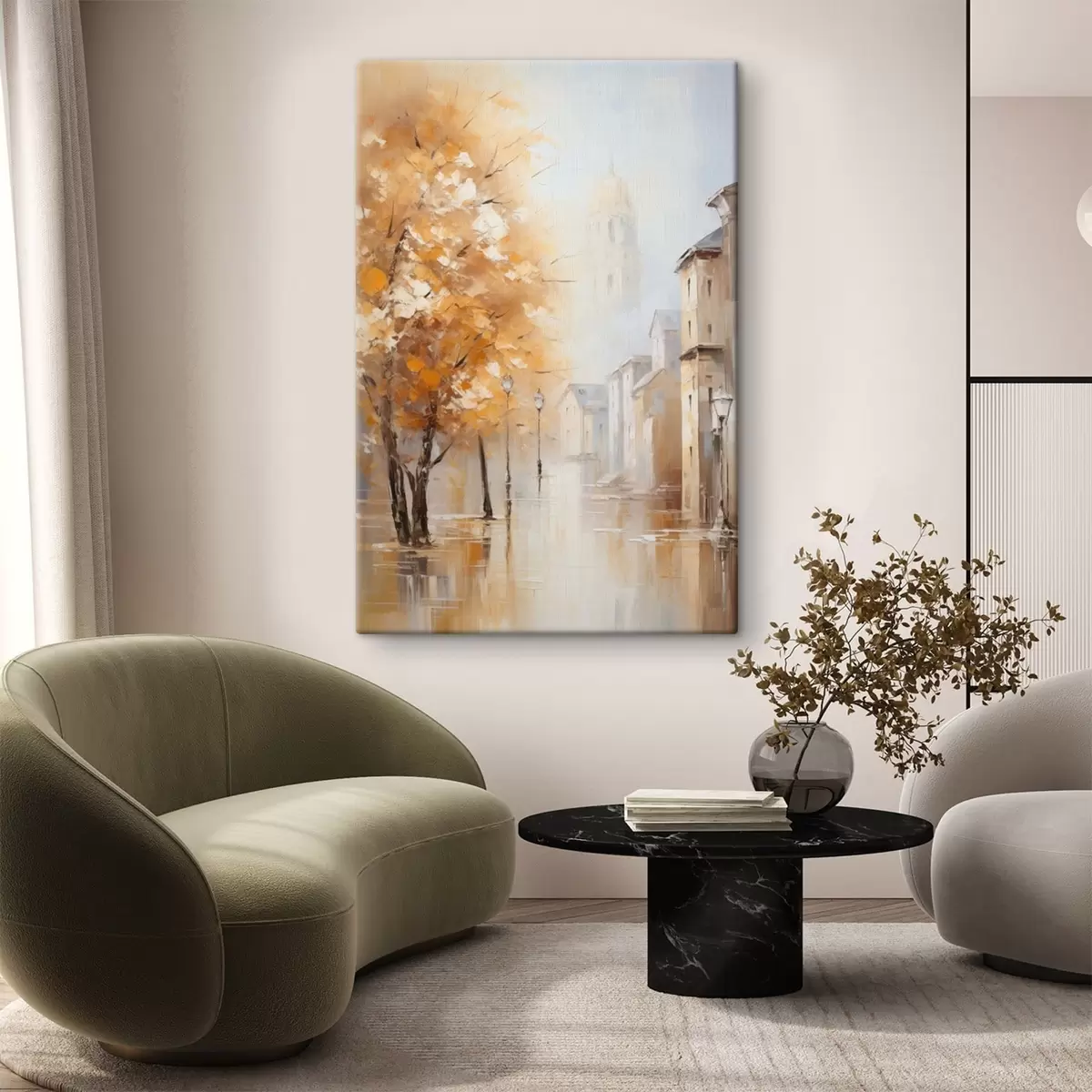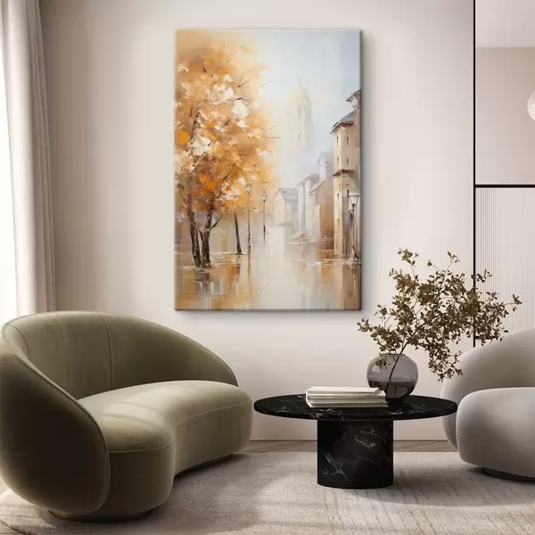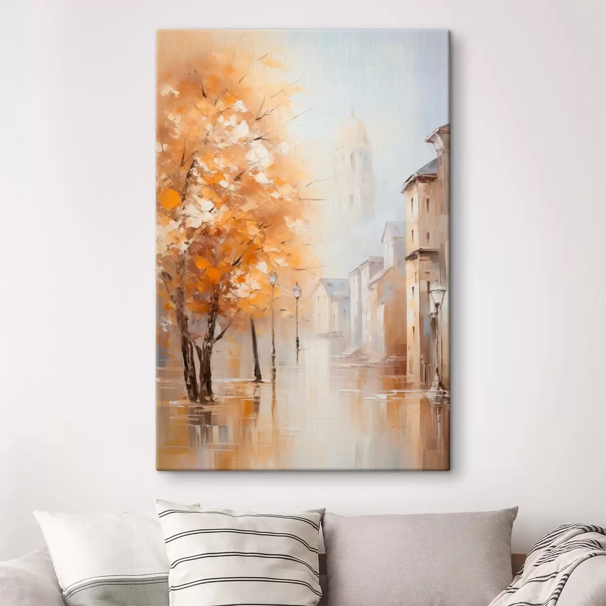 Peinture Rue bordée d'arbres et dôme dans la brume Art. s47304