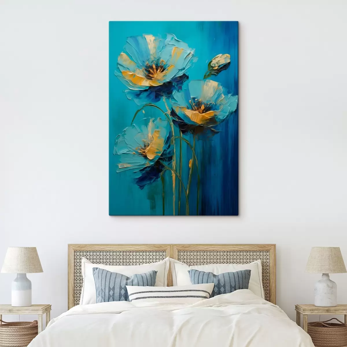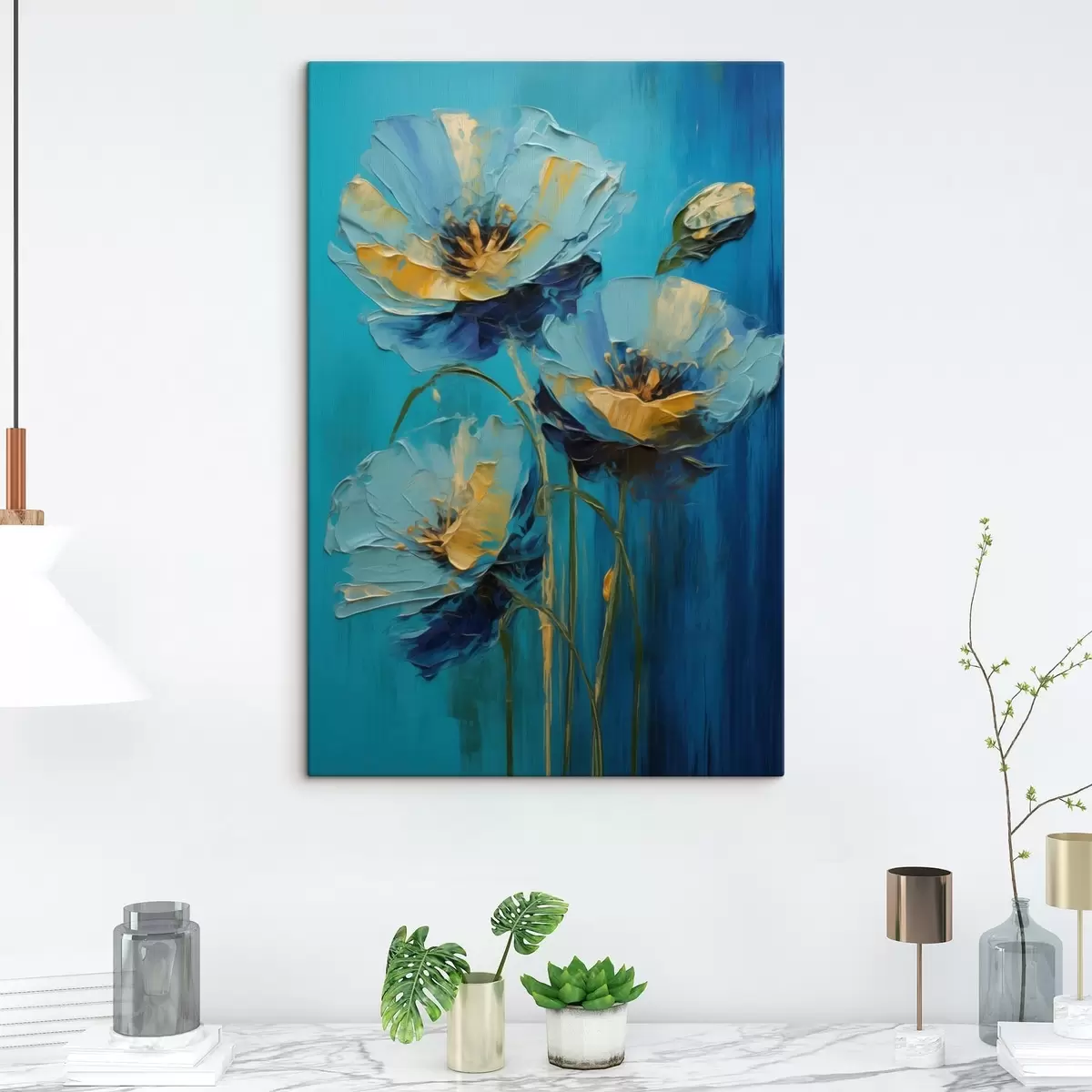 Peinture Fleurs bleues sur fond vif Art. s47324
