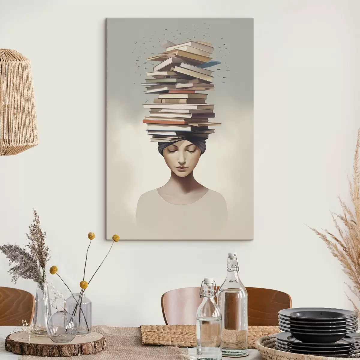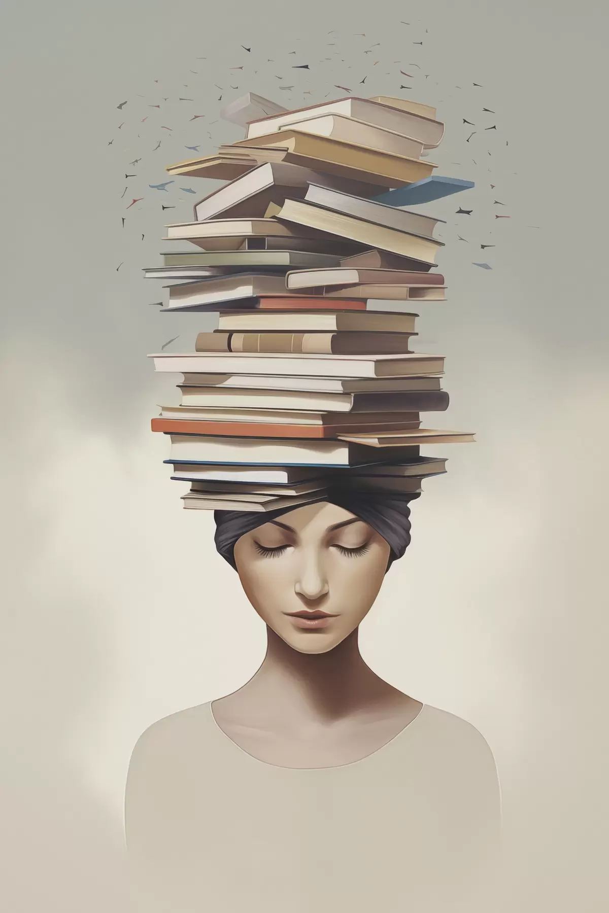 Peinture Portrait d'une jeune fille avec des livres Art. s47333