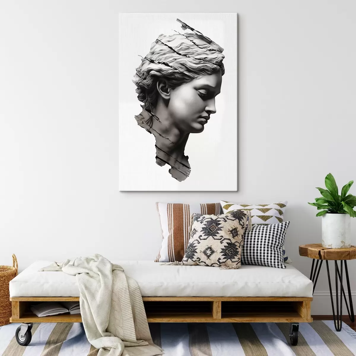 Trois types de matériaux peuvent être commandés : Economic Canvas - matériau dense et durable pour l'impression numérique, identique à la toile de peintre, surface imperméable, reproduction réaliste des détails, matériau à grain moyen. Premium Canvas - la texture ressemble à celle d'une toile de peintre (petits fils entrelacés). Reproduction douce et détaillée de l'image sur une surface mate. Eco-Premium - tissu 100 % coton de haute qualité. Grâce aux fibres naturelles de coton, le matériau est durable et résistant à l'usure. Excellente reproduction des couleurs et des détails.