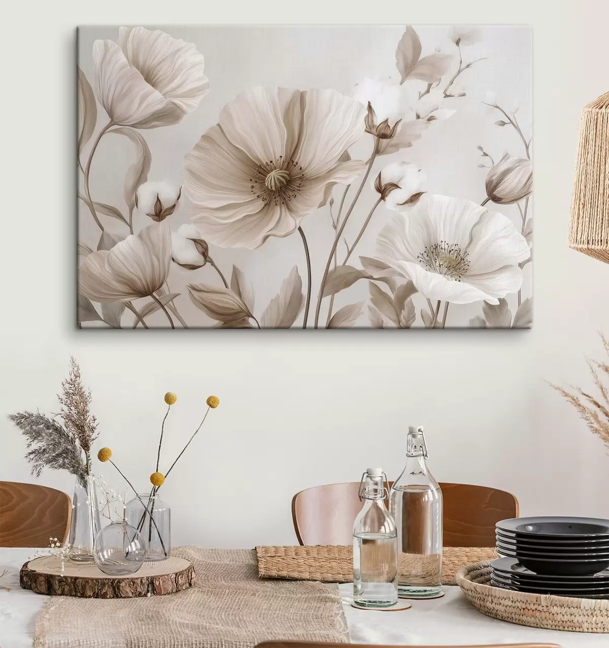 Trois types de matériaux peuvent être commandés : Economic Canvas - matériau dense et durable pour l'impression numérique, identique à la toile de peintre, surface imperméable, reproduction réaliste des détails, matériau à grain moyen. Premium Canvas - la texture ressemble à celle d'une toile de peintre (petits fils entrelacés). Reproduction douce et détaillée de l'image sur une surface mate. Eco-Premium - tissu 100 % coton de haute qualité. Grâce aux fibres naturelles de coton, le matériau est durable et résistant à l'usure. Excellente reproduction des couleurs et des détails.