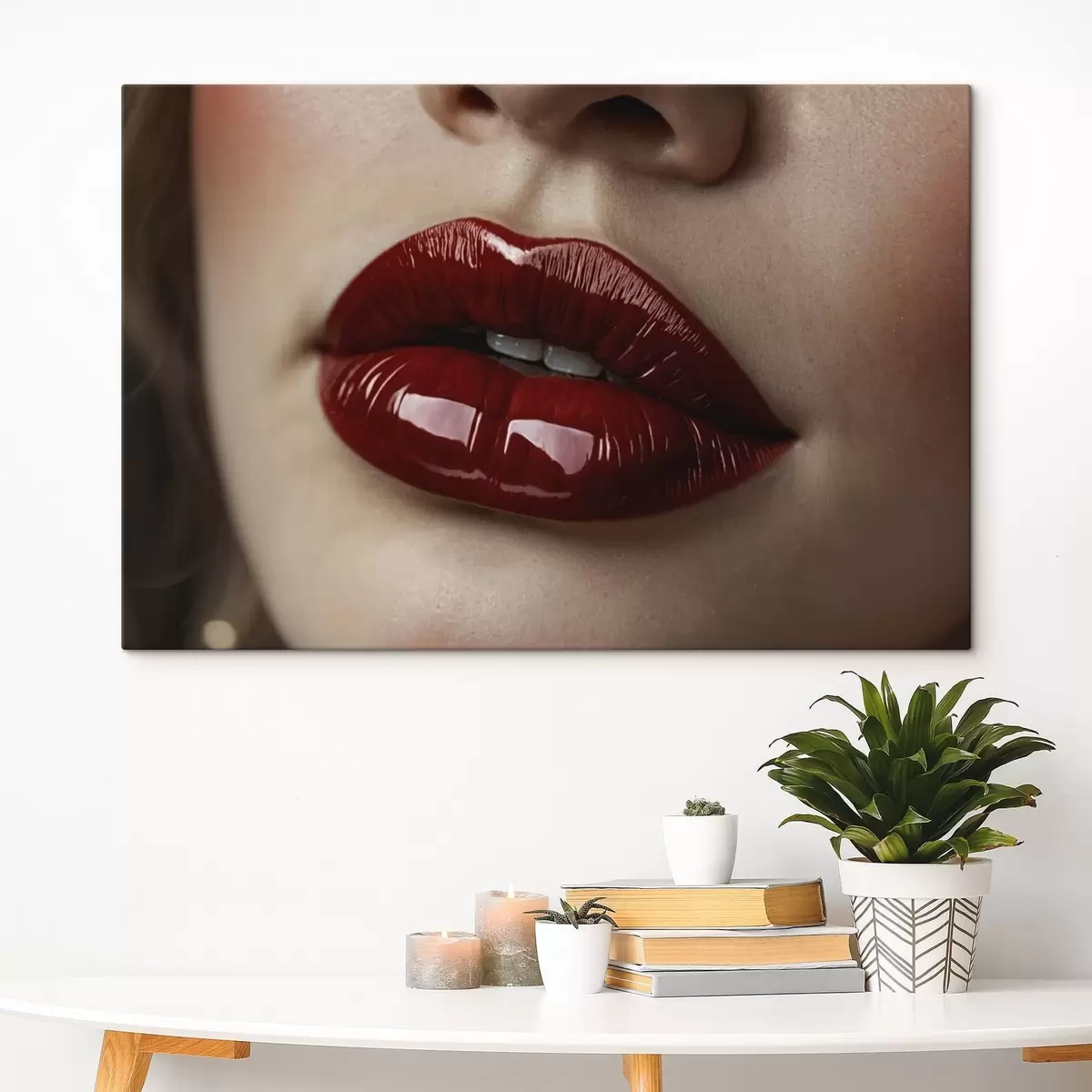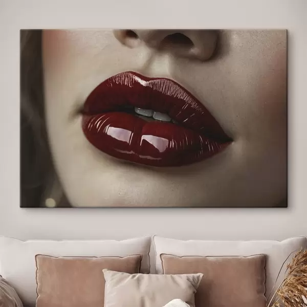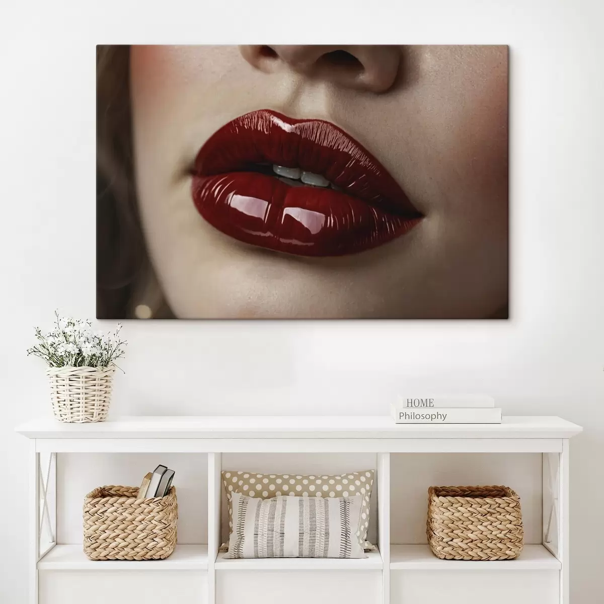 Peintures Gros plan sur des lèvres rouges brillantes s47772