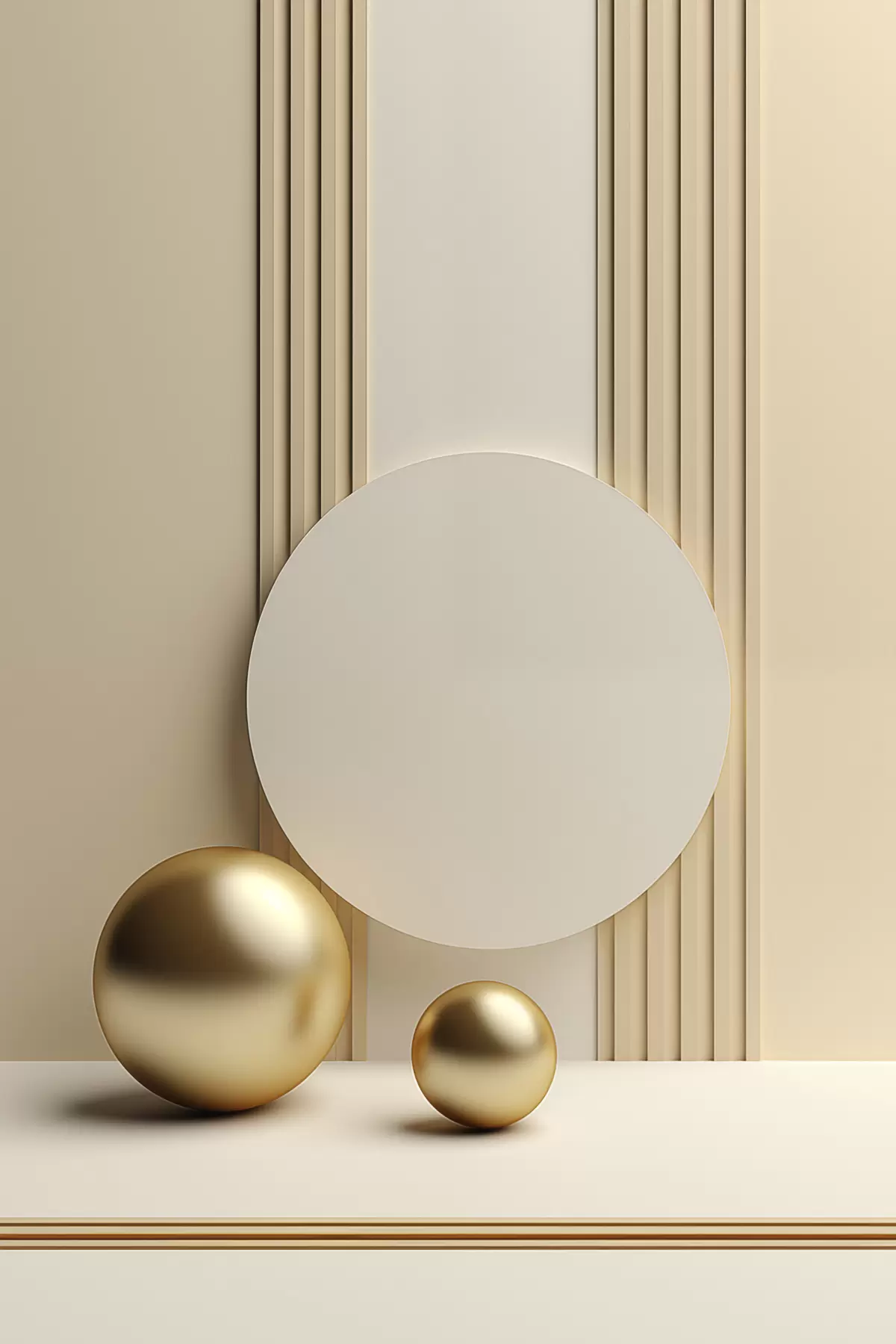 Peintures Art moderne abstrait beige avec lignes verticales et sphères s47872