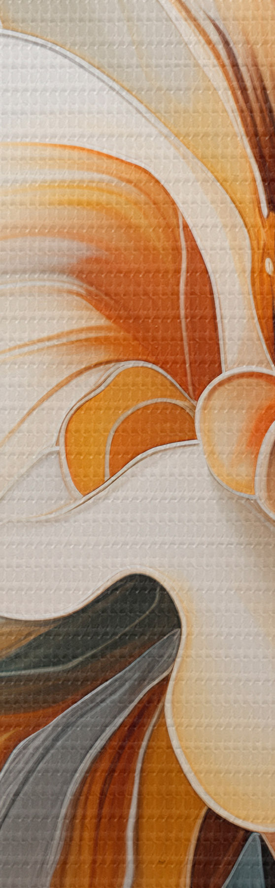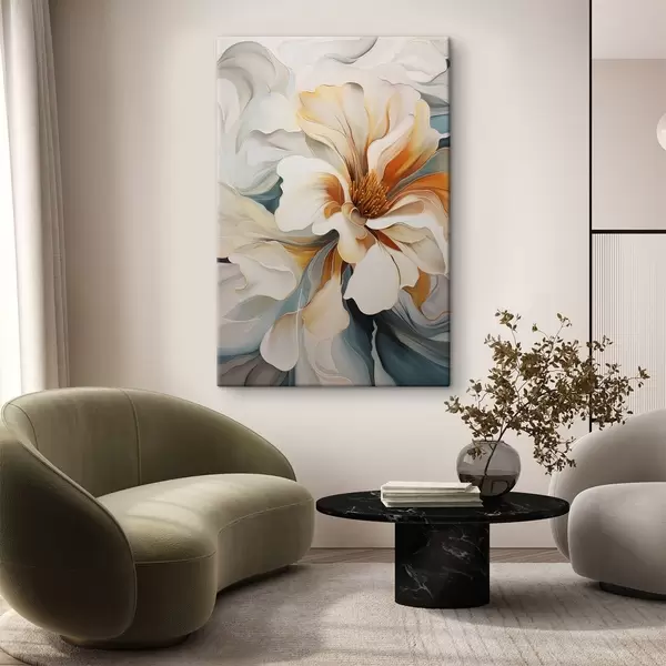 Peinture Fleur abstraite de grande taille avec des pétales blancs, orange et bleu sarcelle, fond texturé Art. s47877