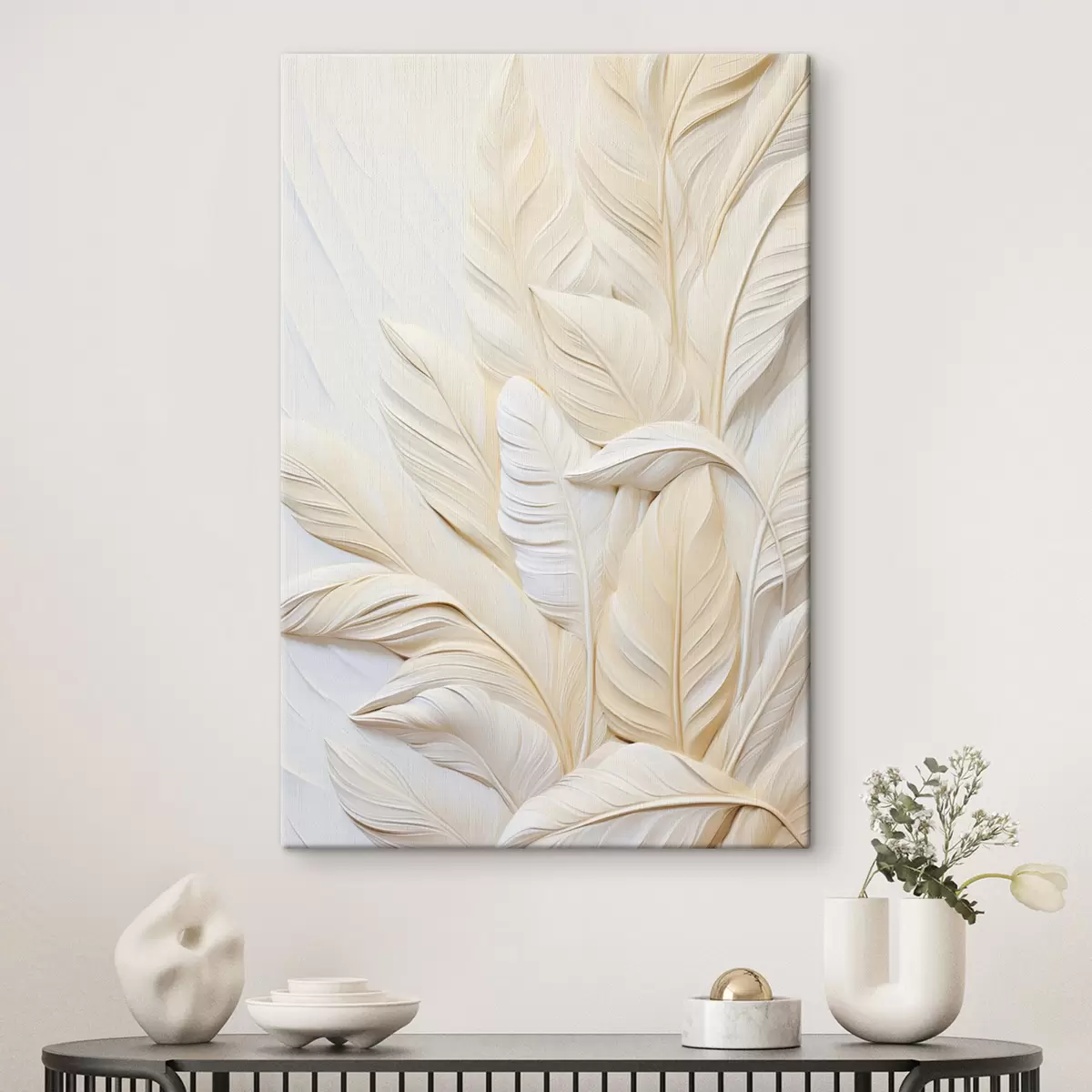 Peinture Plumes de couleur crème se chevauchant, sur un fond clair et doux. Art. s47883