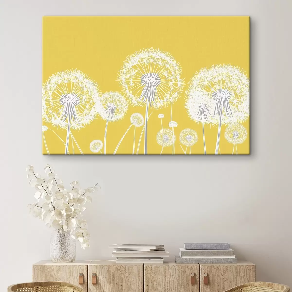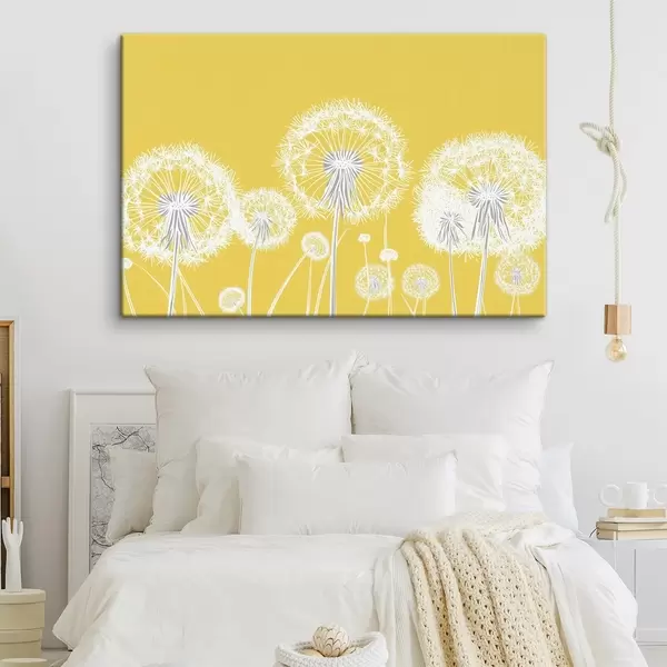 Peinture Pissenlits blancs sur fond jaune Art. s47890
