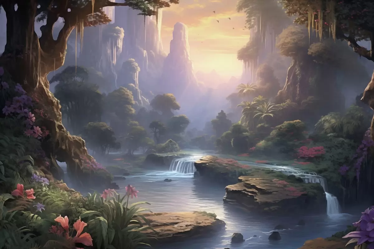 Peinture Cascades dans une forêt enchantée Art. s47893