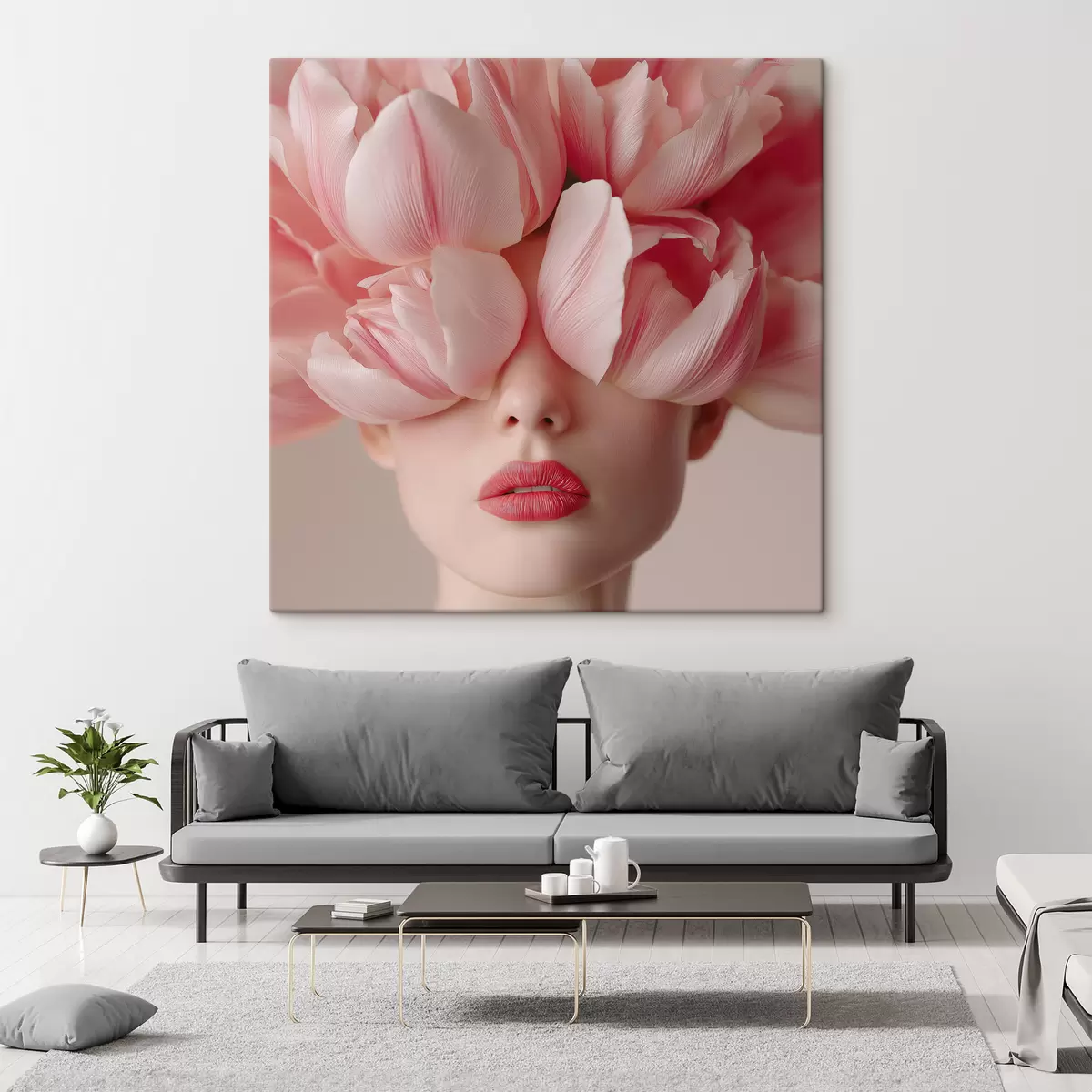 Peinture Portrait de femme avec des pétales roses Art. s47920