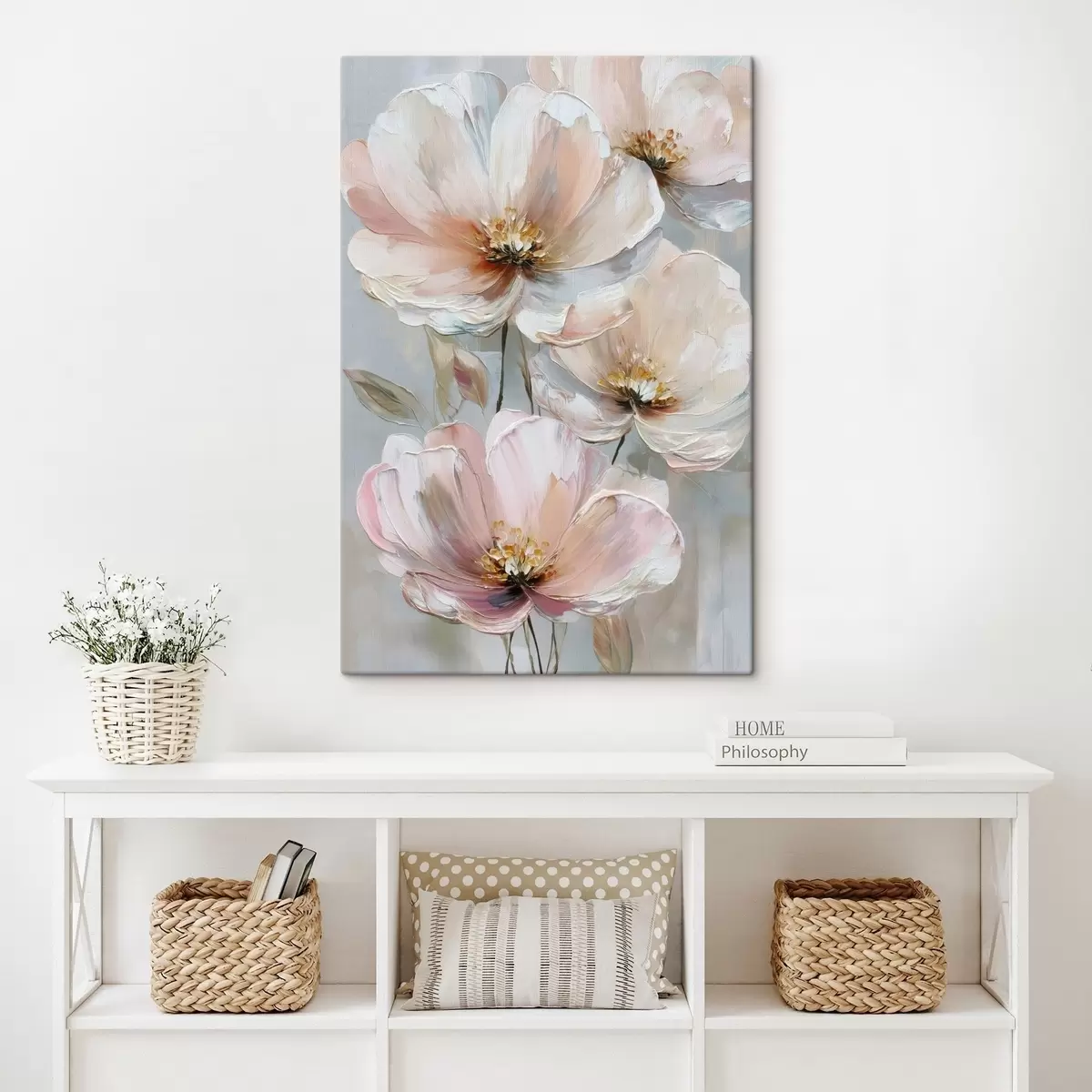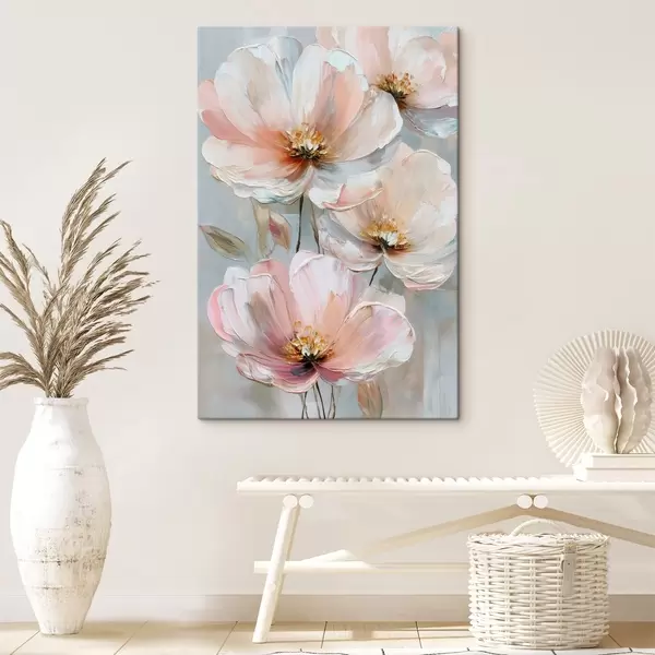 Peintures Fleurs blanc-rose avec des coups de pinceau expressifs dans un style peinture à l'huile s47962