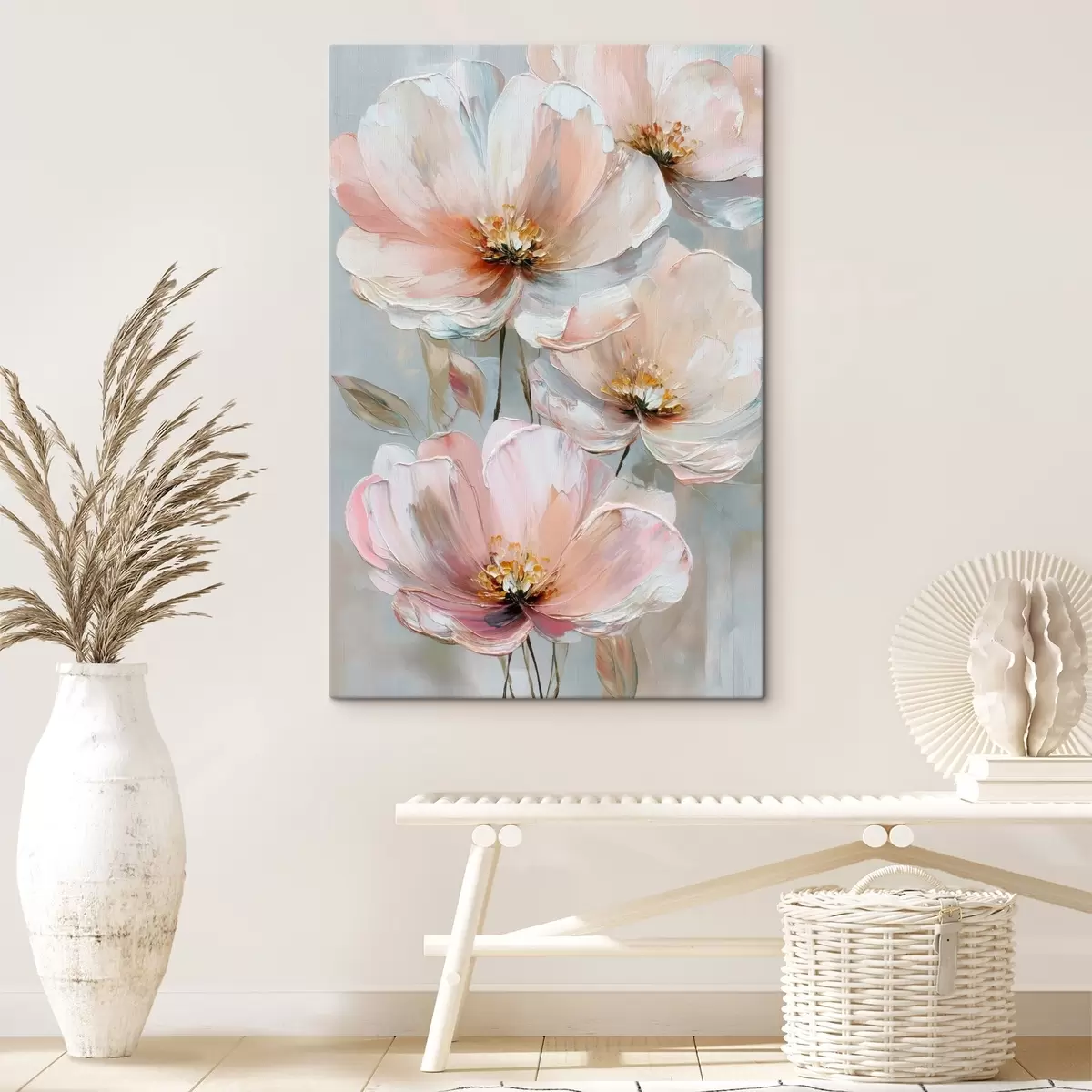 Peinture Fleurs blanc-rose avec des coups de pinceau expressifs dans un style peinture à l'huile Art. s47962