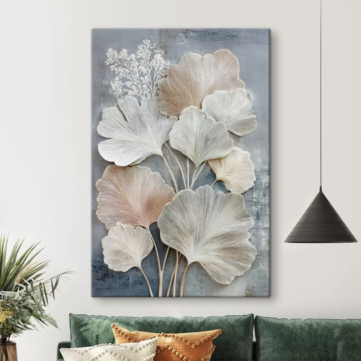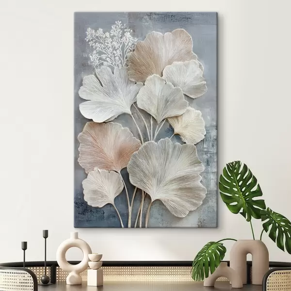 Peinture Composition florale abstraite dans une palette beige-bleu Art. s47963