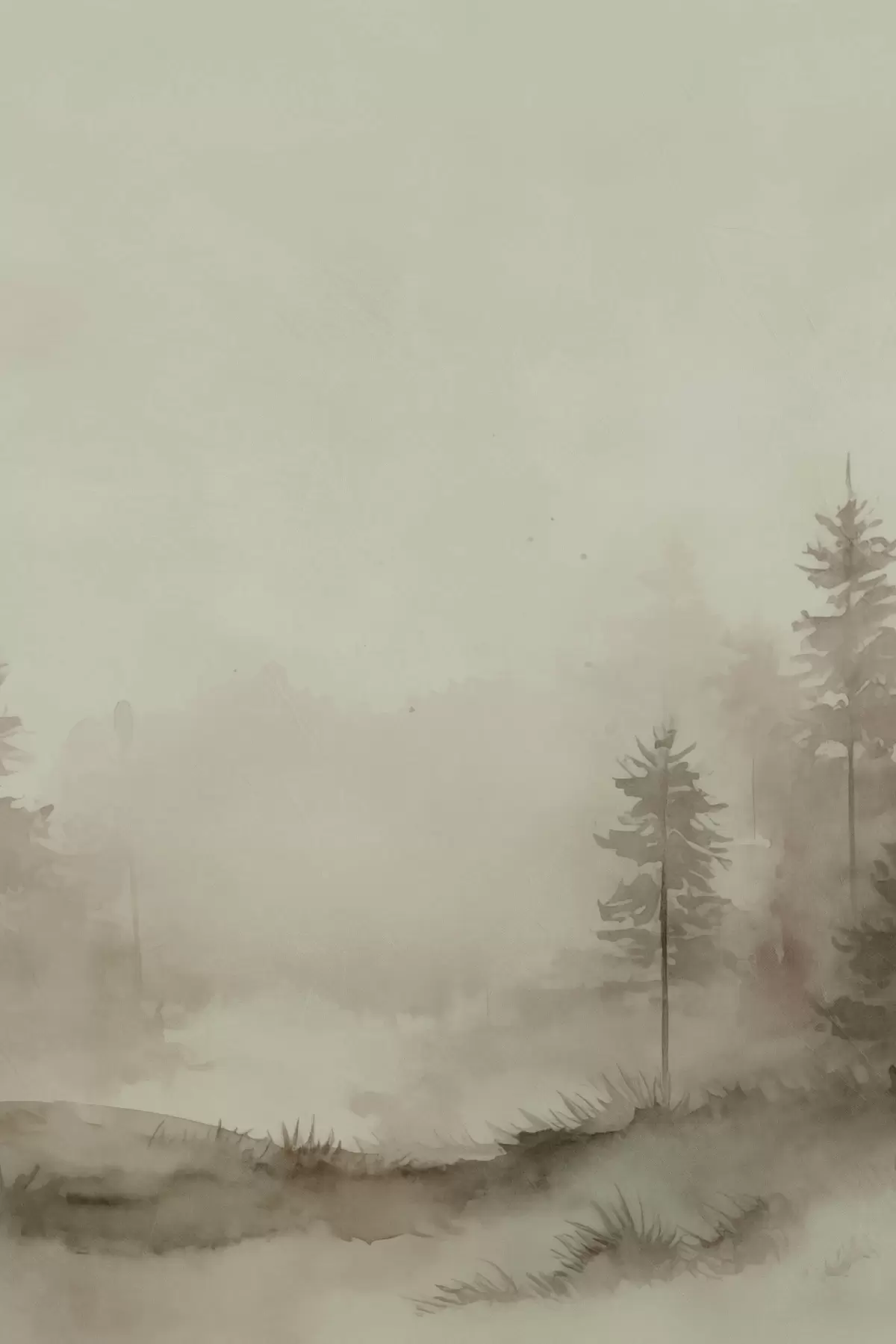 Peintures Forêt de conifères, imitation aquarelle s47997