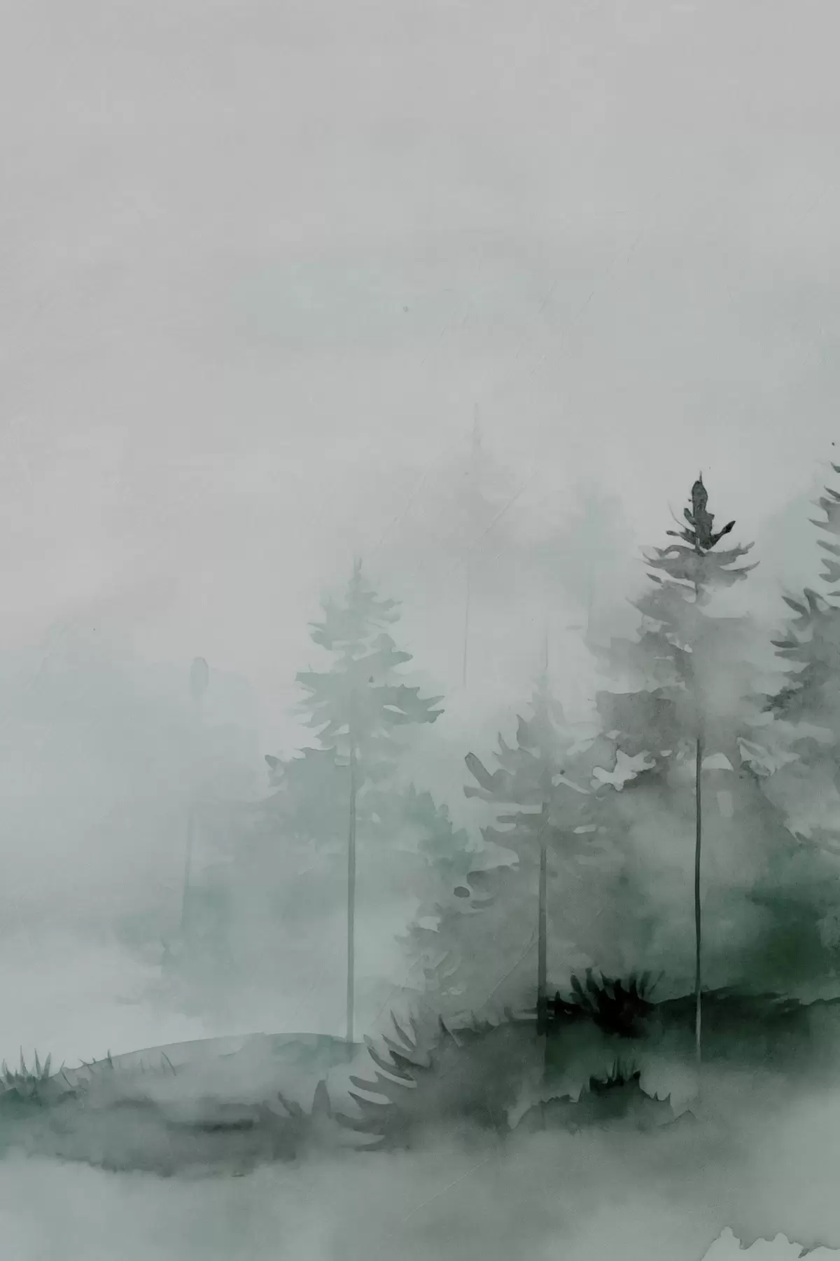 Peintures Sapins dans la forêt, imitation aquarelle s47998