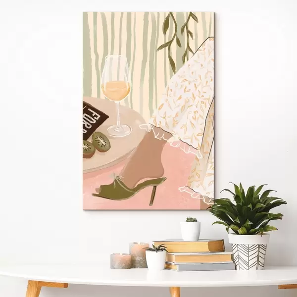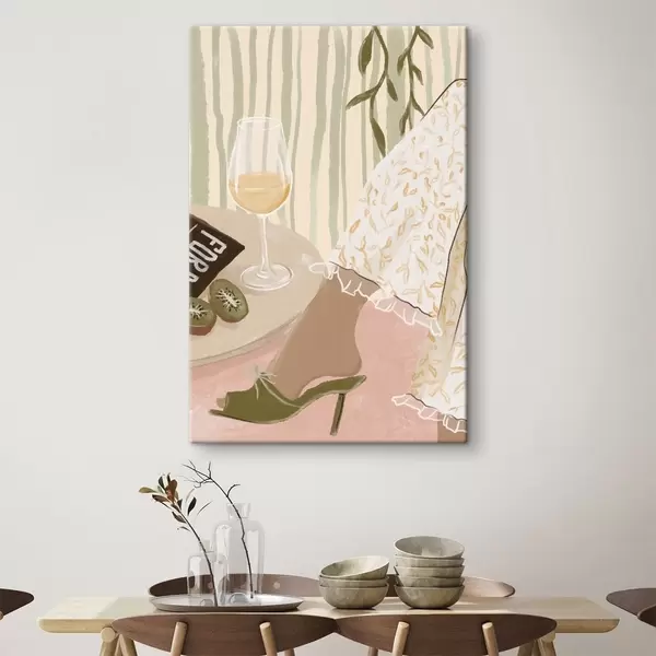 Peinture Table avec verre à vin et kiwi près de la robe Art. s48021