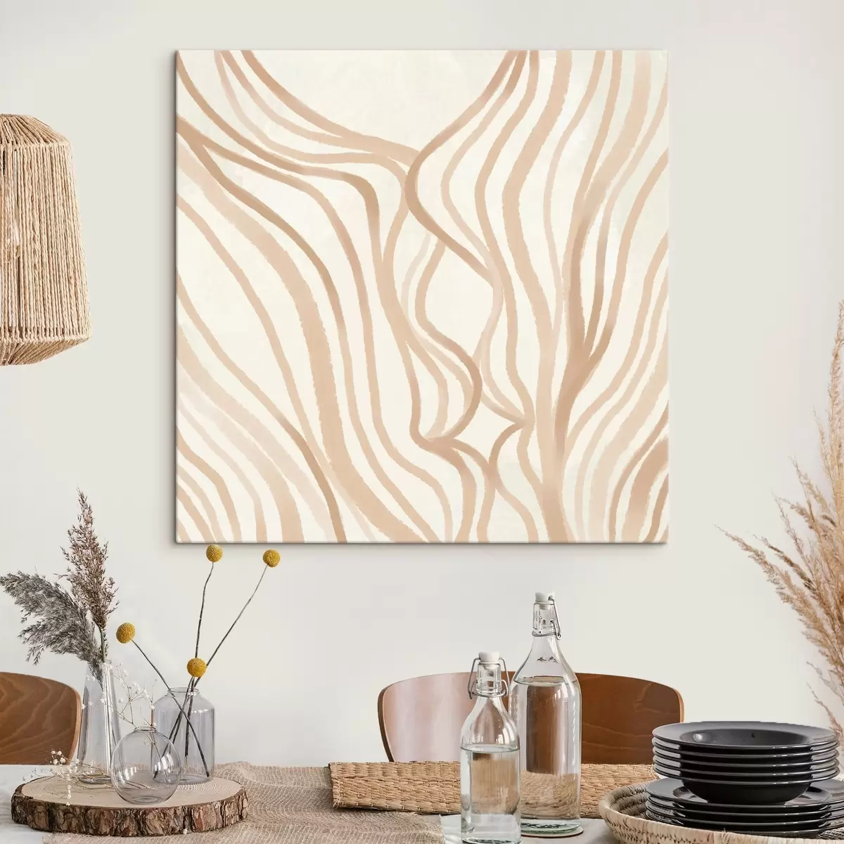 Peinture Lignes ondulées abstraites dans des tons beiges Art. s48027