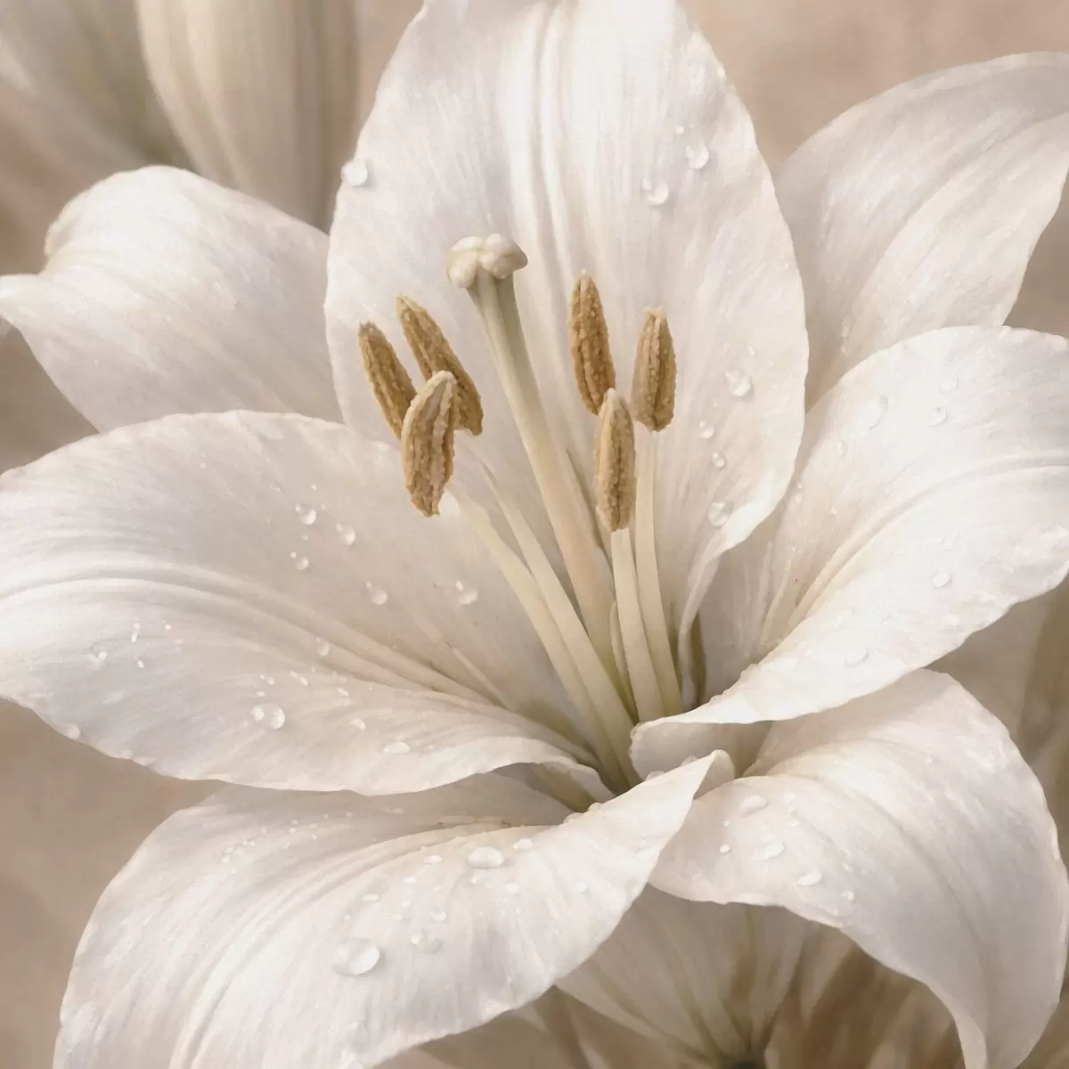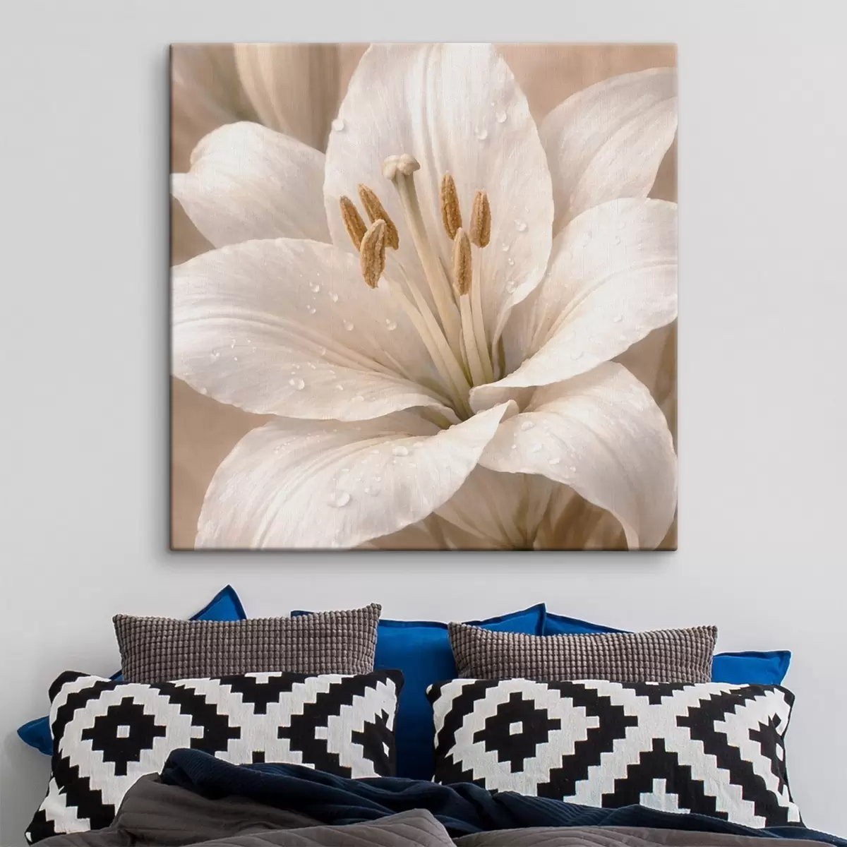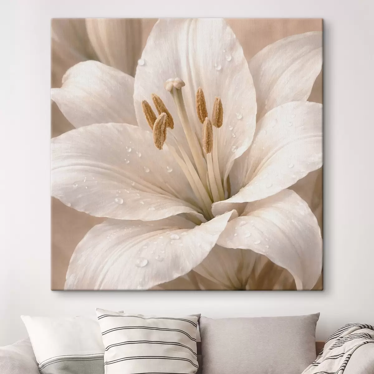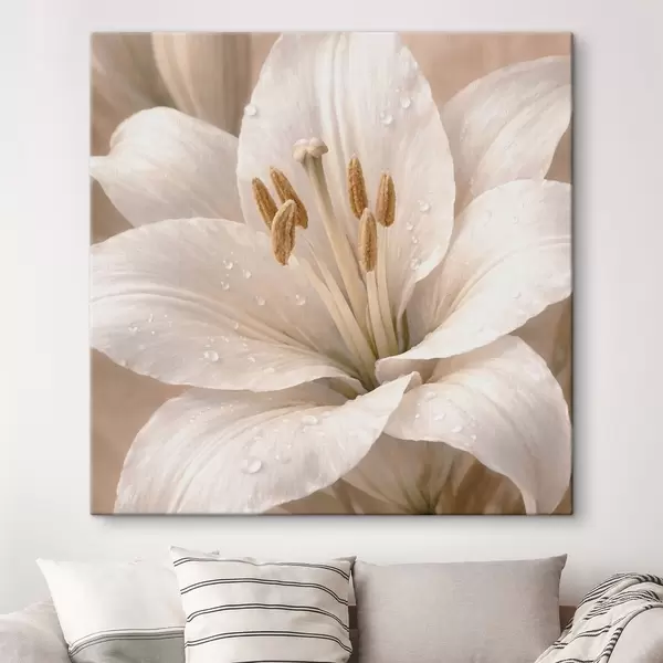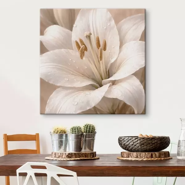 Peinture Gros plan sur une fleur blanche avec des gouttelettes d'eau Art. s48028
