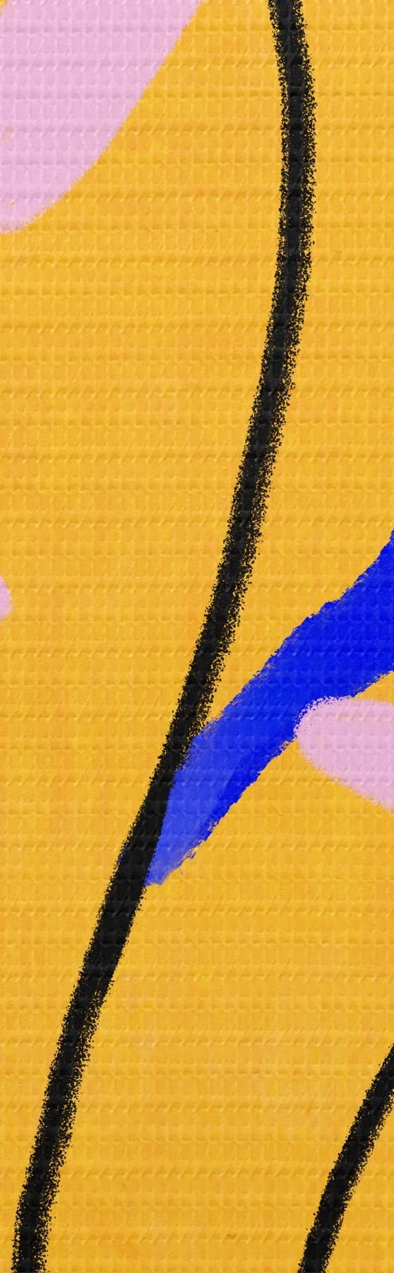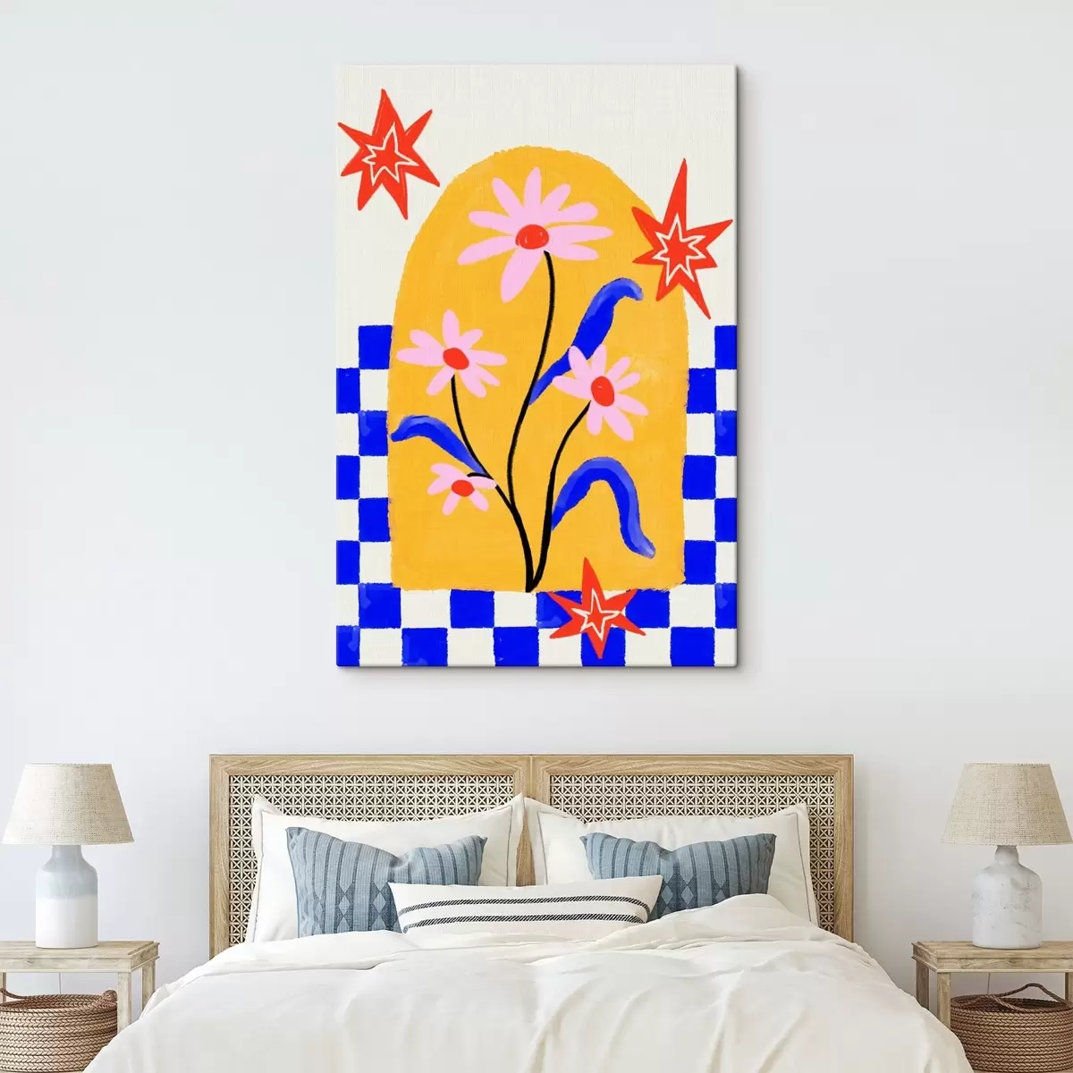 Peinture Fleurs aux couleurs vives sur fond jaune avec des motifs bleus Art. s48034