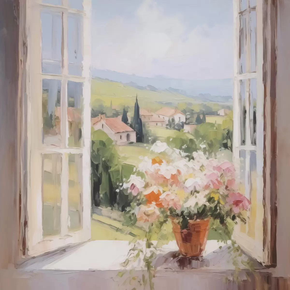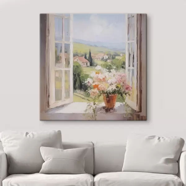 Peinture Un bouquet dans un vase près de la fenêtre Art. s48052